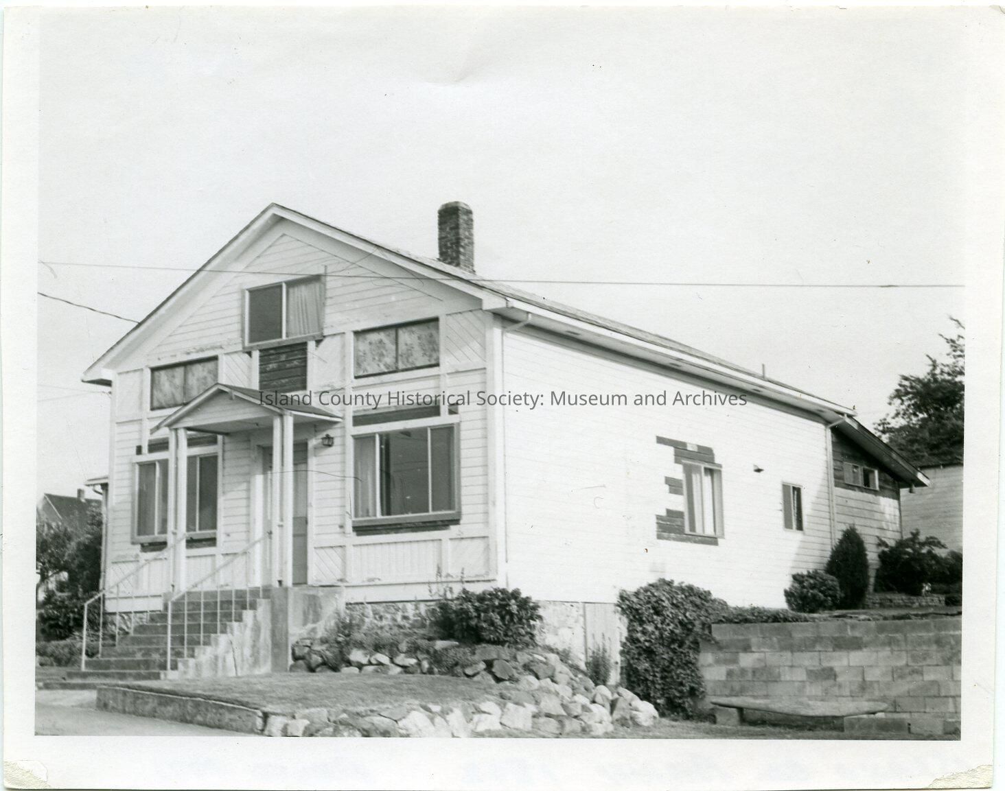 PNRO page 166: built in 1892, site of the Island County Bank, Inc. It closed in December 1893. Island County Abstract Office. In 1903-1933 Bank of Commerce Everett in the building. Extensive remodeling. A residence and Wylie M. Vracin, M.D. used it as a medical facility. Now a residence. On the back: Island Co. Bank, 1892. #143A, p111 1 of 3.