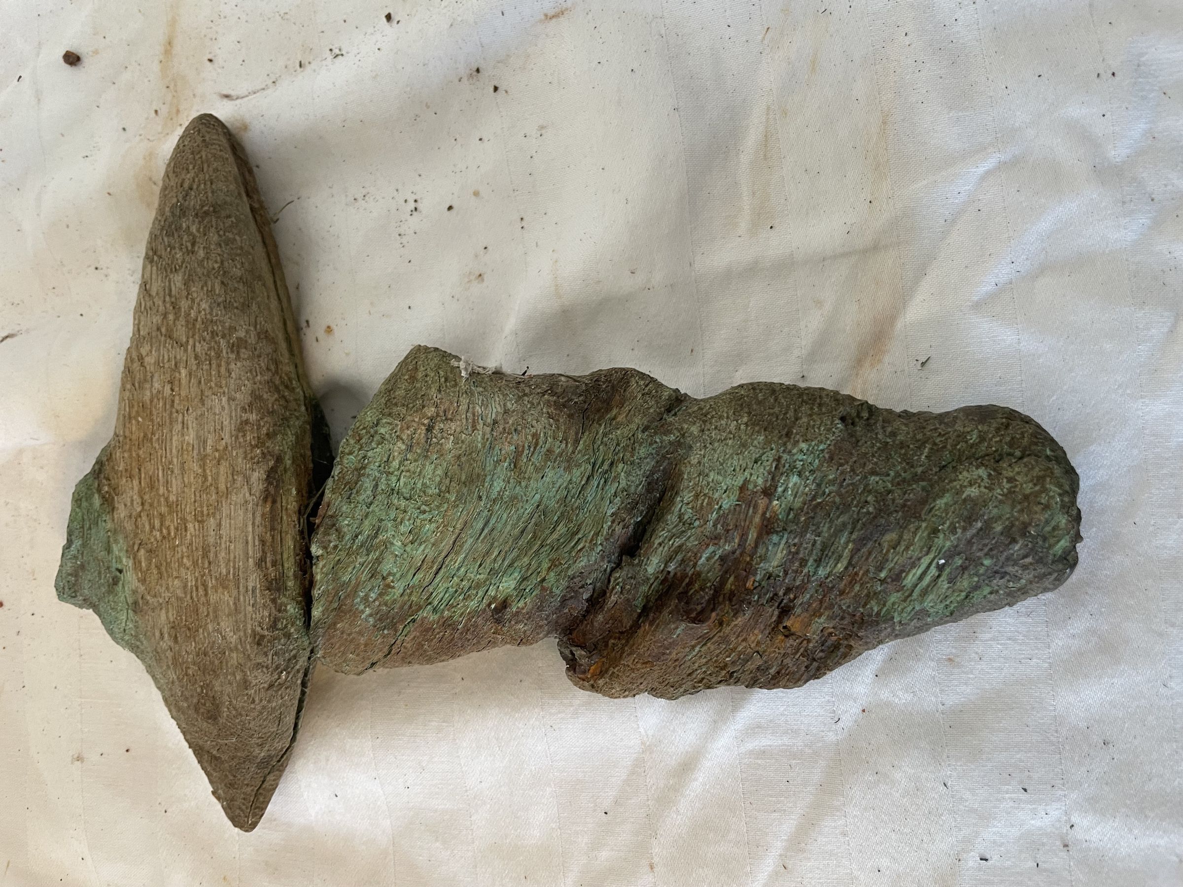 Similar to ship bit #1, this is a two blocks of wood attached to a metal rod. Most likely from a ship, or the bottom of boat