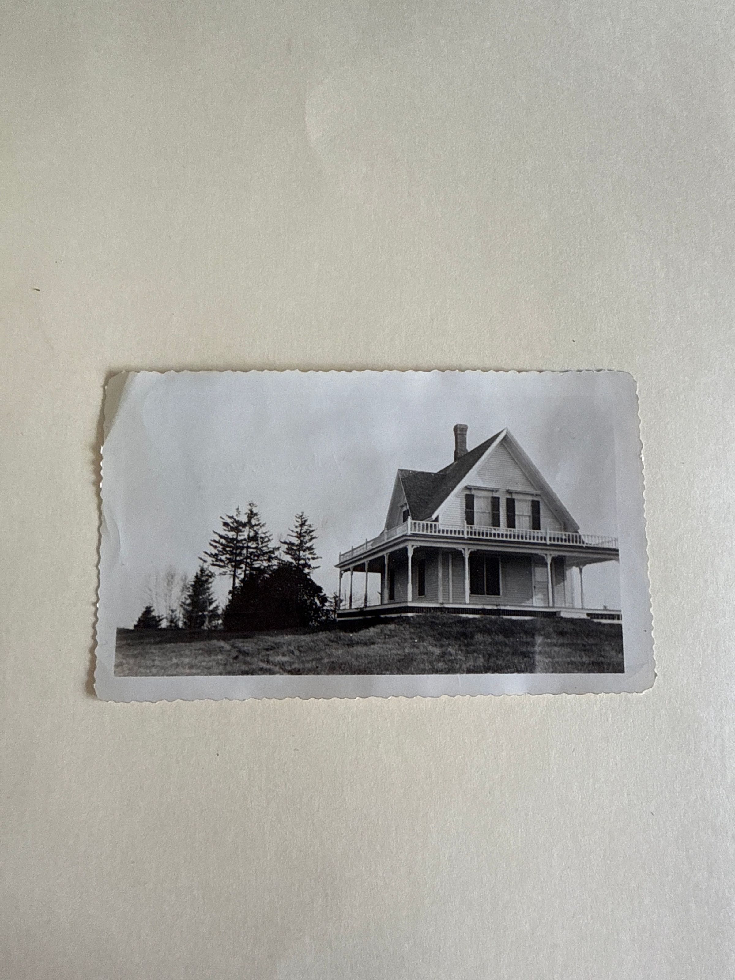 Same house as 1994.027.0003. Snapshot of an "island style" house, 2-storey, wide overhangs, cross-gabled, heavy pediments over windows & doors, clapboard, porch with turned posts. On back "Yellowhammer - 1996 Phillip Staples house - Alice L Pendleton may have lived here." Per Mary Ella Rolerson Grinnell this house was originally owned by Joseph Pendleton, then by Alice Louise Pendleton (of the Library) who named it "Yellowhammer" for the bird, as she was a lover of nature.
