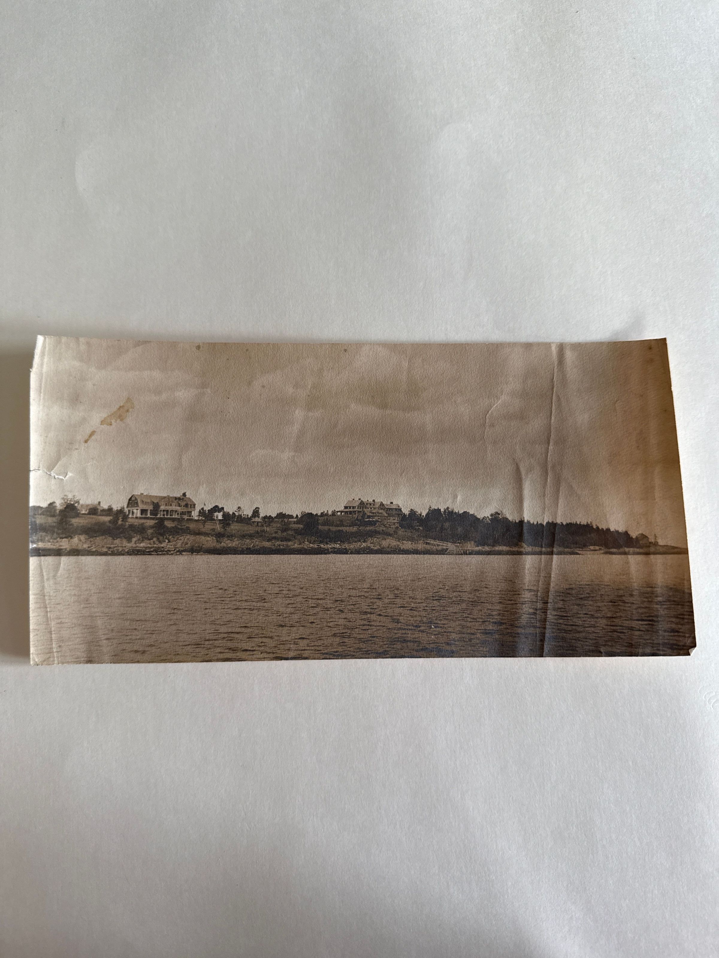 5x9.5" sepia print of Islesboro cottages from the East Bay: Williamson, Dexter Tiffany, first Islesboro Inn.