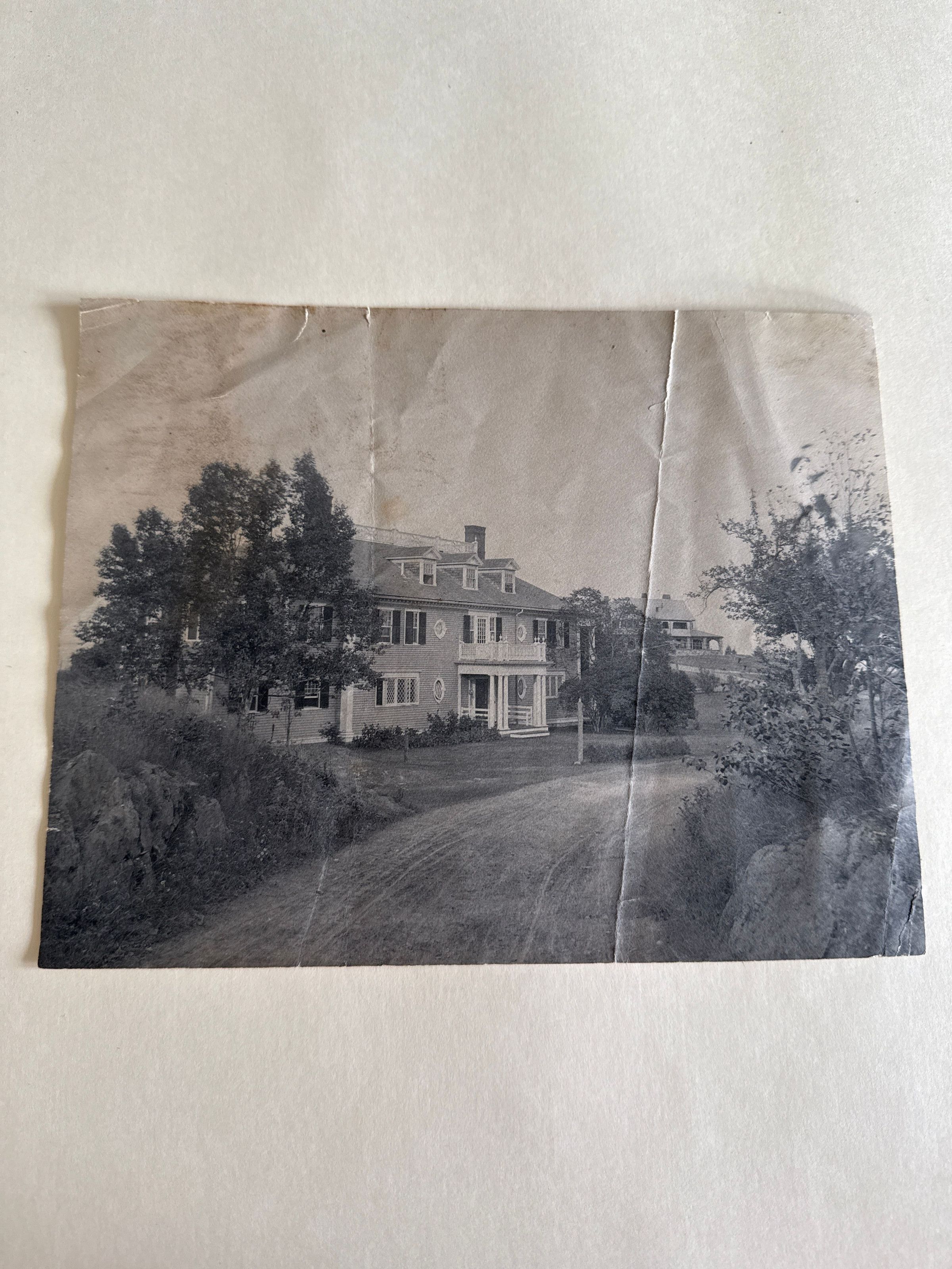 7x9" photo of the Philler Cottage, later The Dark Harbor House, now in private hands again. A large cottage with stone verandah shows in background, probably the first Islesboro Inn.