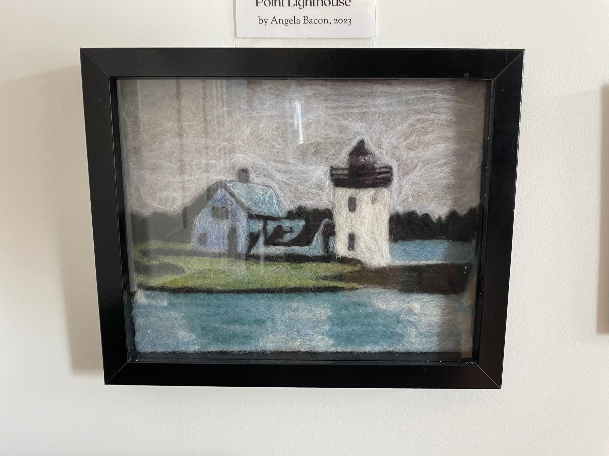 Felt Painting of the Grindle Point Lighthouse done by island artist Angela Bacon. Donated for display in 2023.
