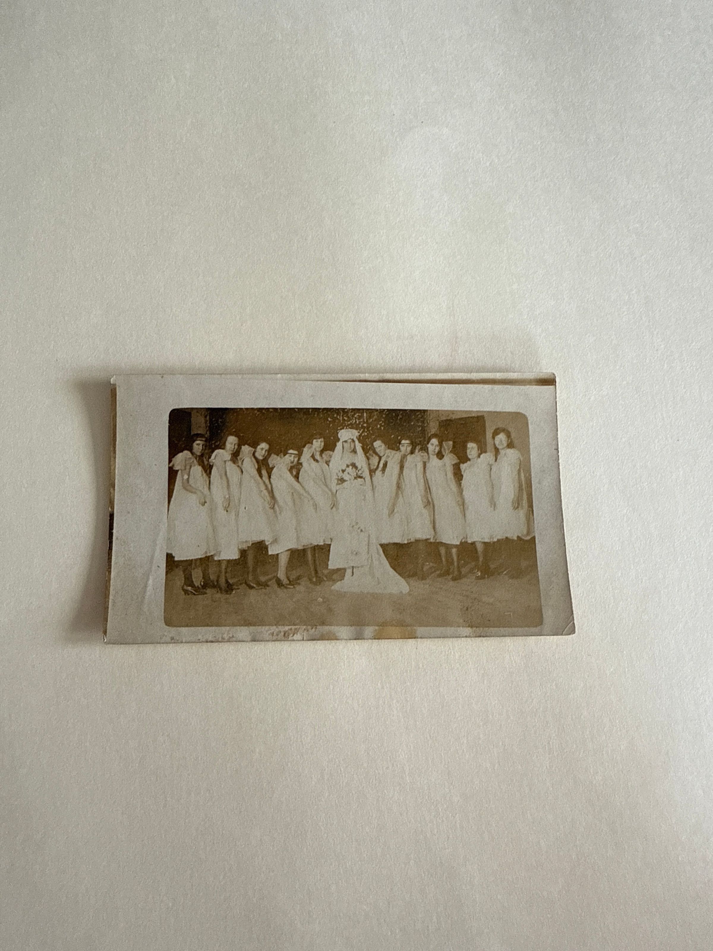 Small photo, sepia, girls in costume, 1918, identified, 2 of 3 copies Some identities do not match other two photos