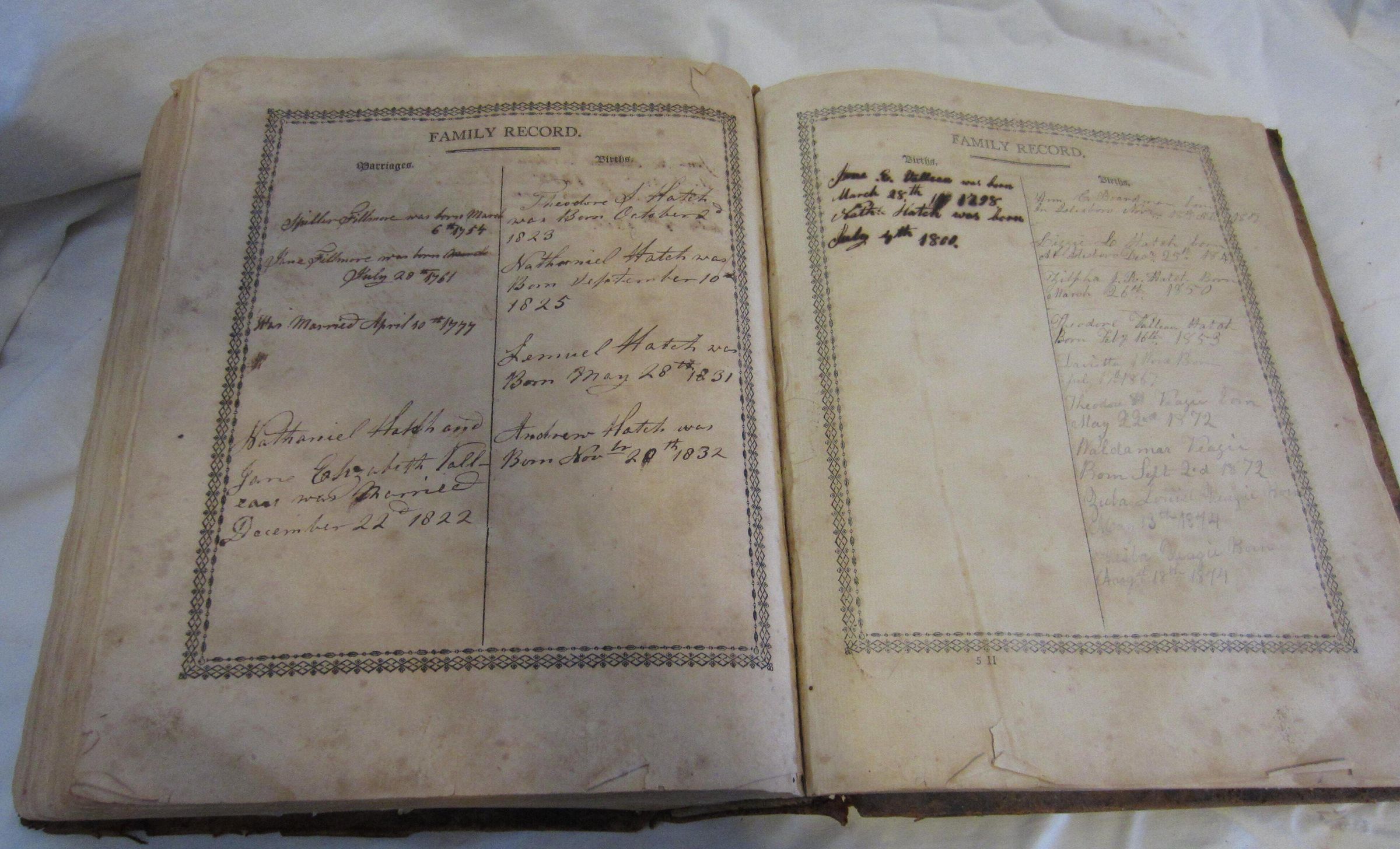 Births: Theodore Hatch 10/1823; Nathaniel Hatch 9/1825; Lemuel Hatch 5/28/1831; Andrew Hatch 11/20/1832;