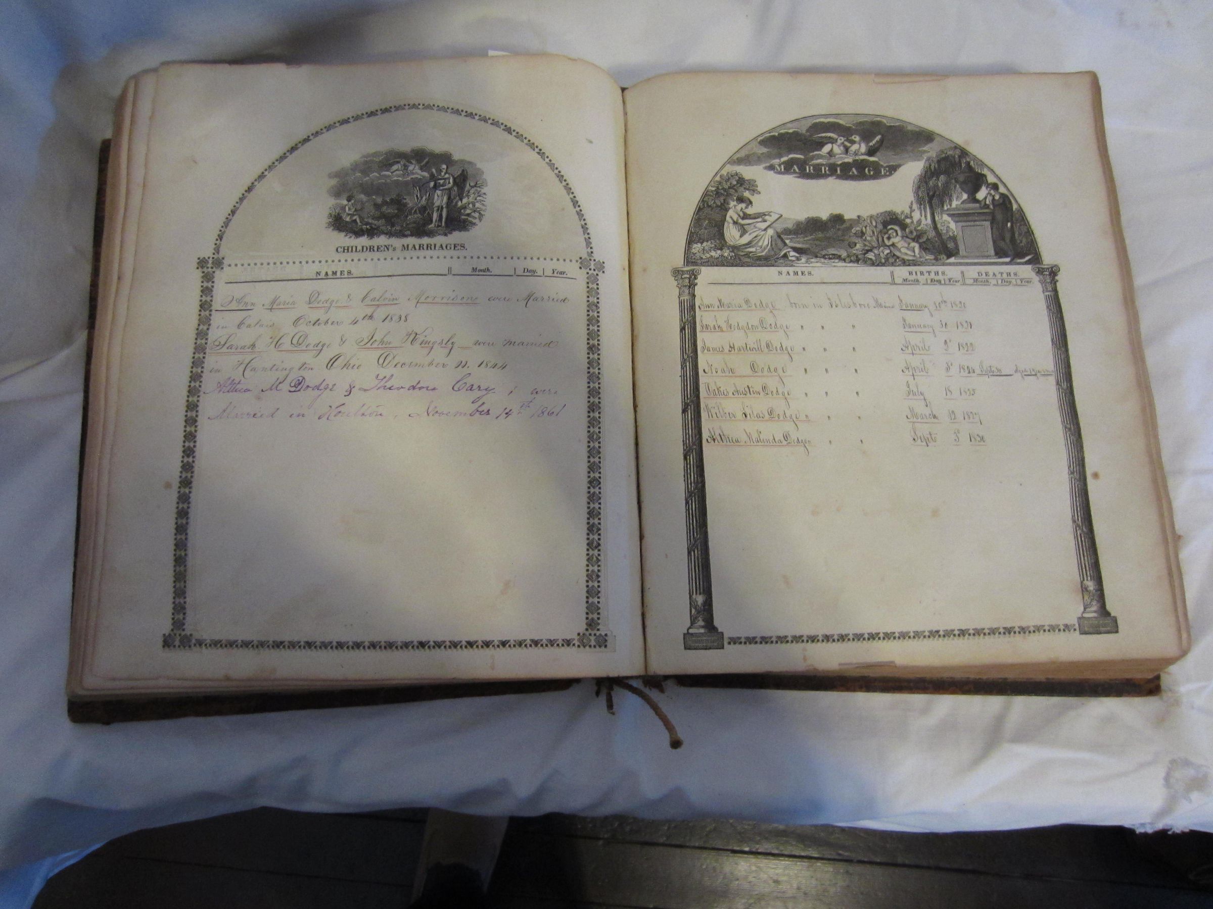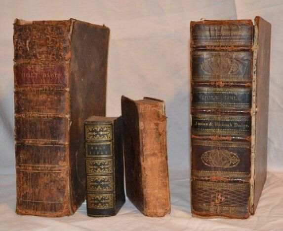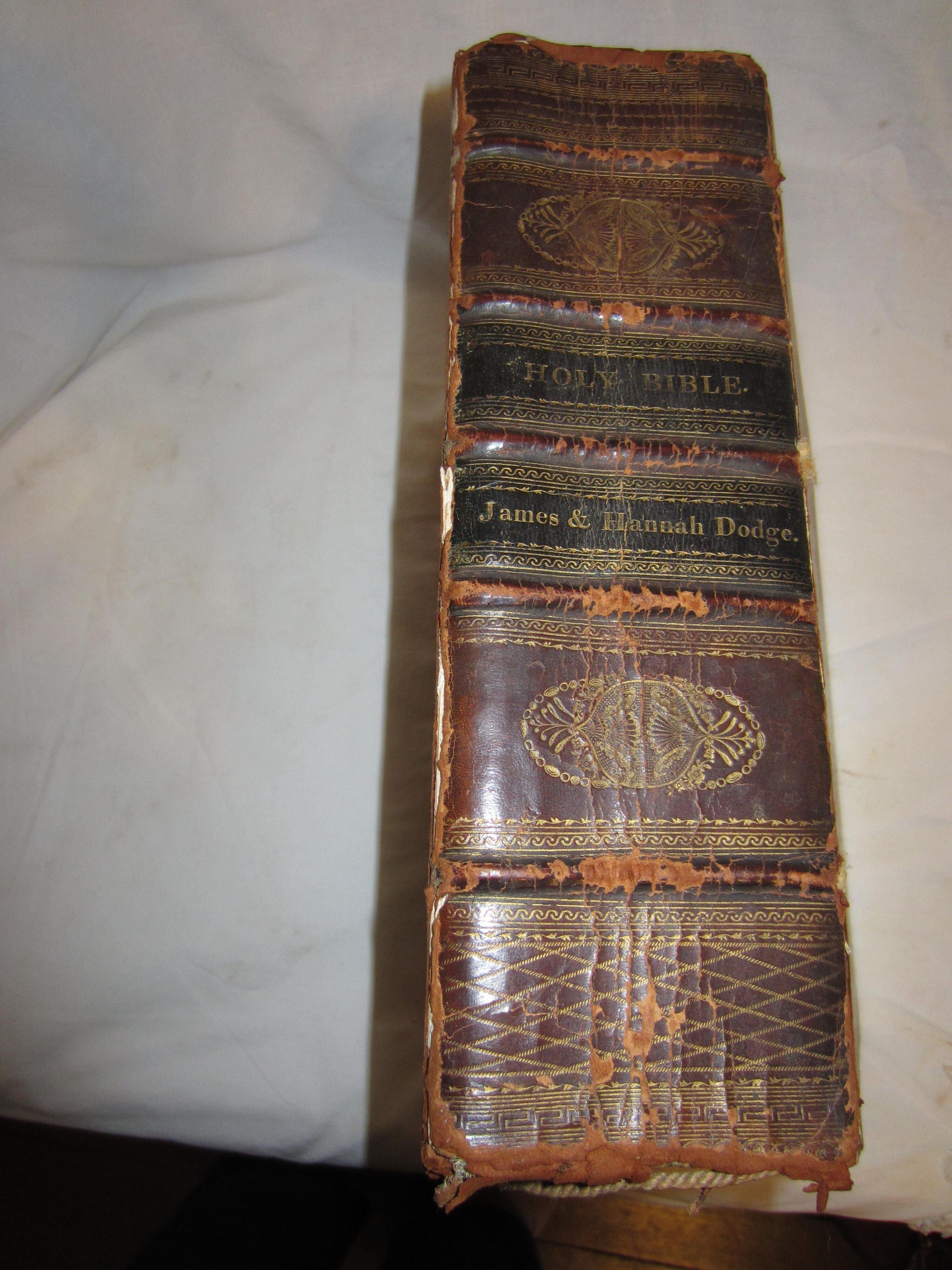 ORIGINAL INSCRIPTION: On the spine are the words: Holy Bible James & Hannah Dodge.