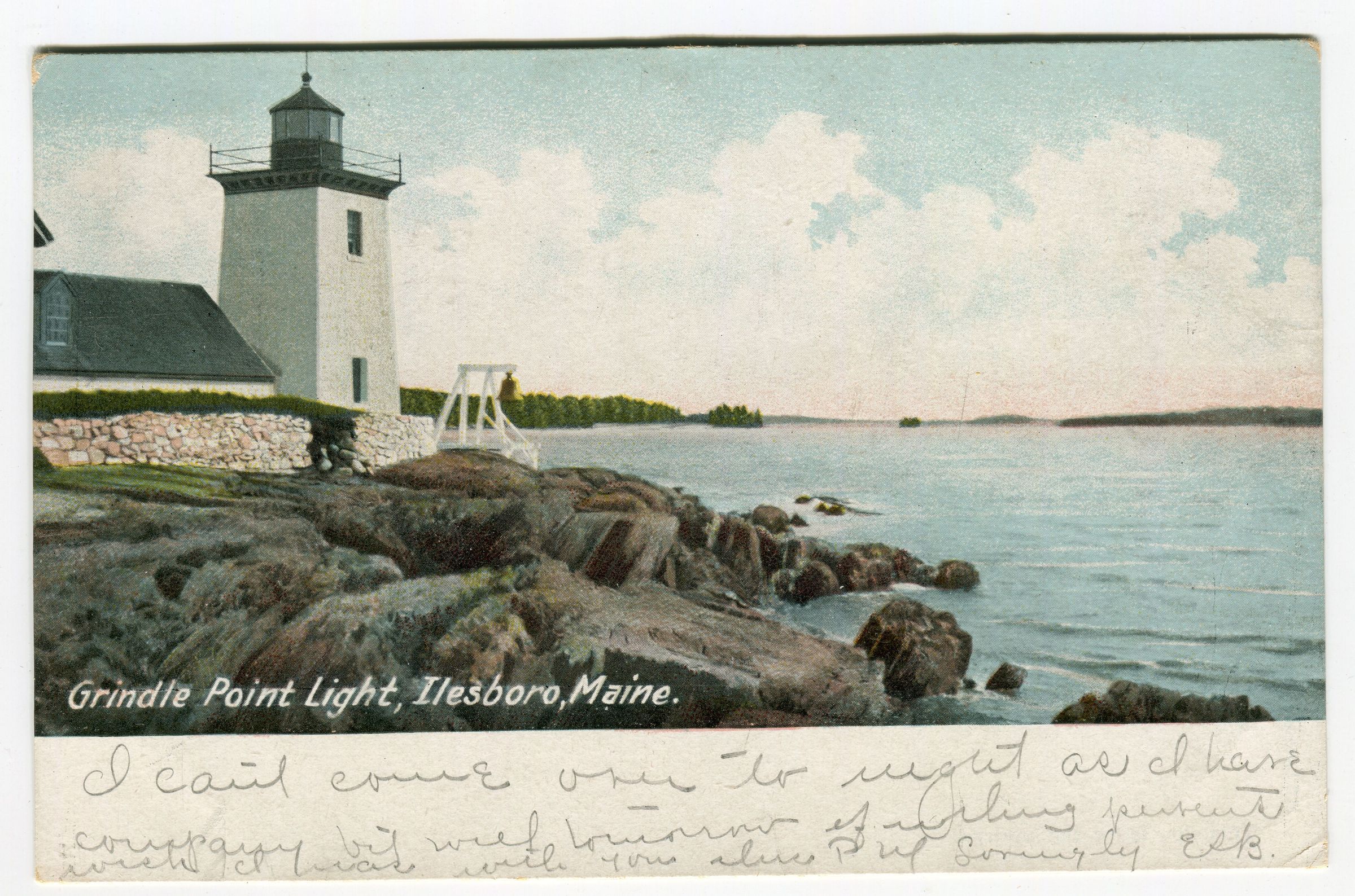 Postcard mailed in Augusta Feb. 20, 1906 Shows the lighthouse and bell from shore side, in color. SC 356 (?)