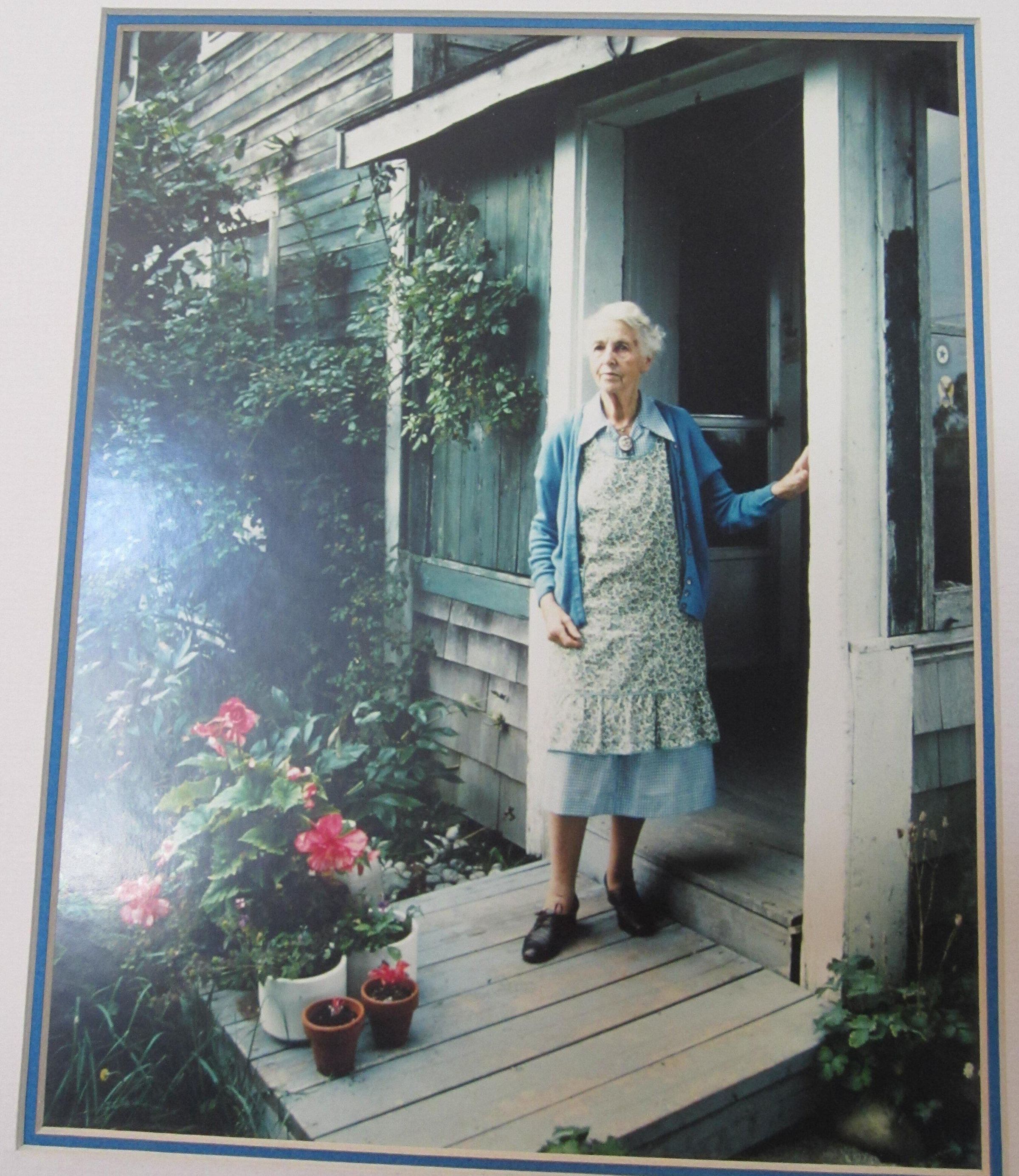 Color photograph of Annie Jones Rolerson, 87, standing in her doorway, taken by Alissa Crandall in 1980. Double matted.