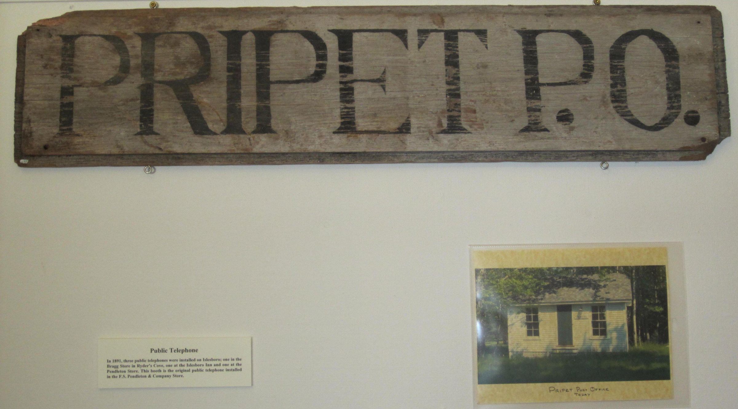 41 inches x 9 inches. Pripet P.O. painted in black capital letter. 1/2 inch border around sign is thinner than main body of sign.