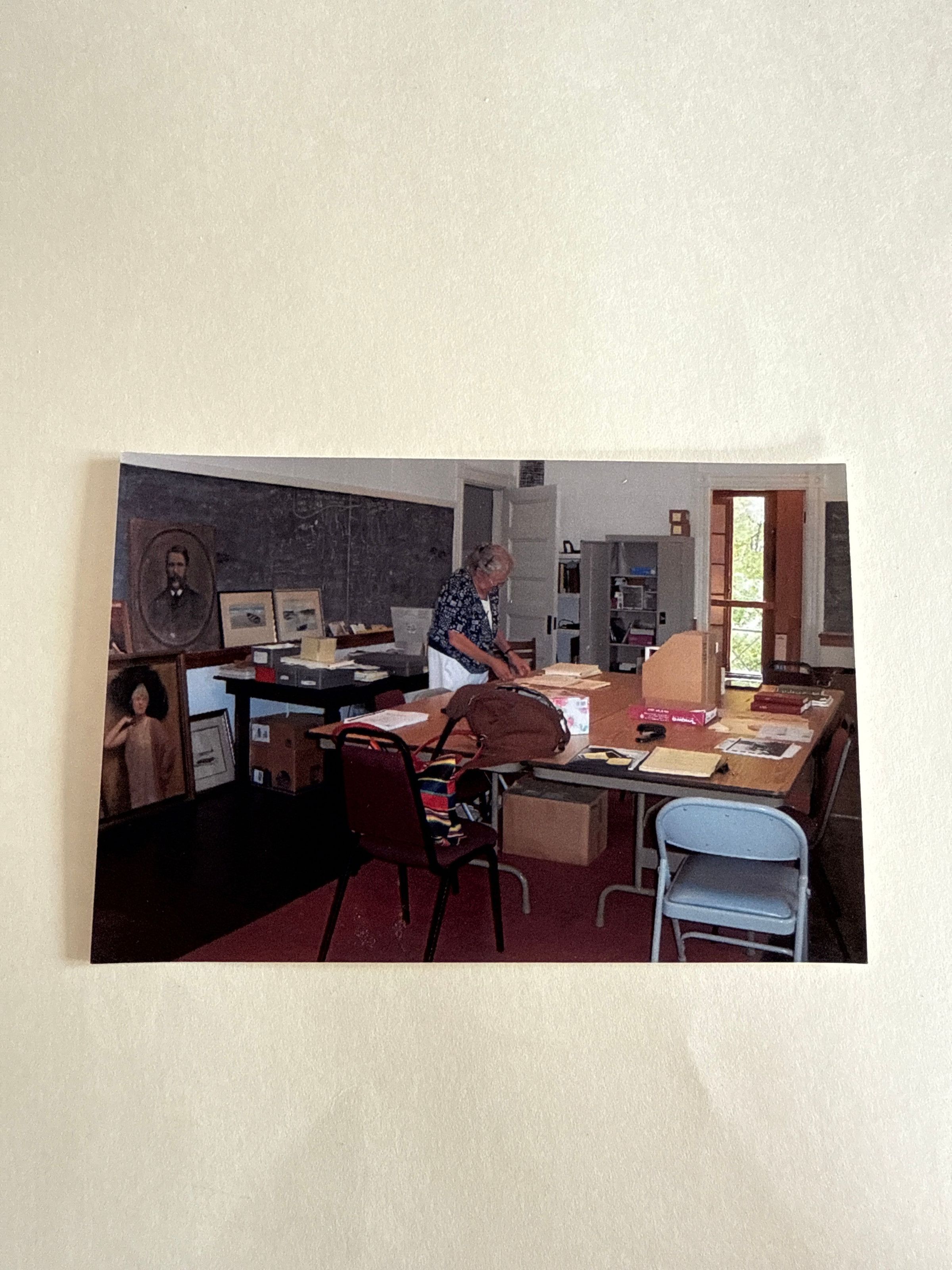 4"h x 6"w color photograph of Marcy Congdon working in the IHS office, July, 2011.