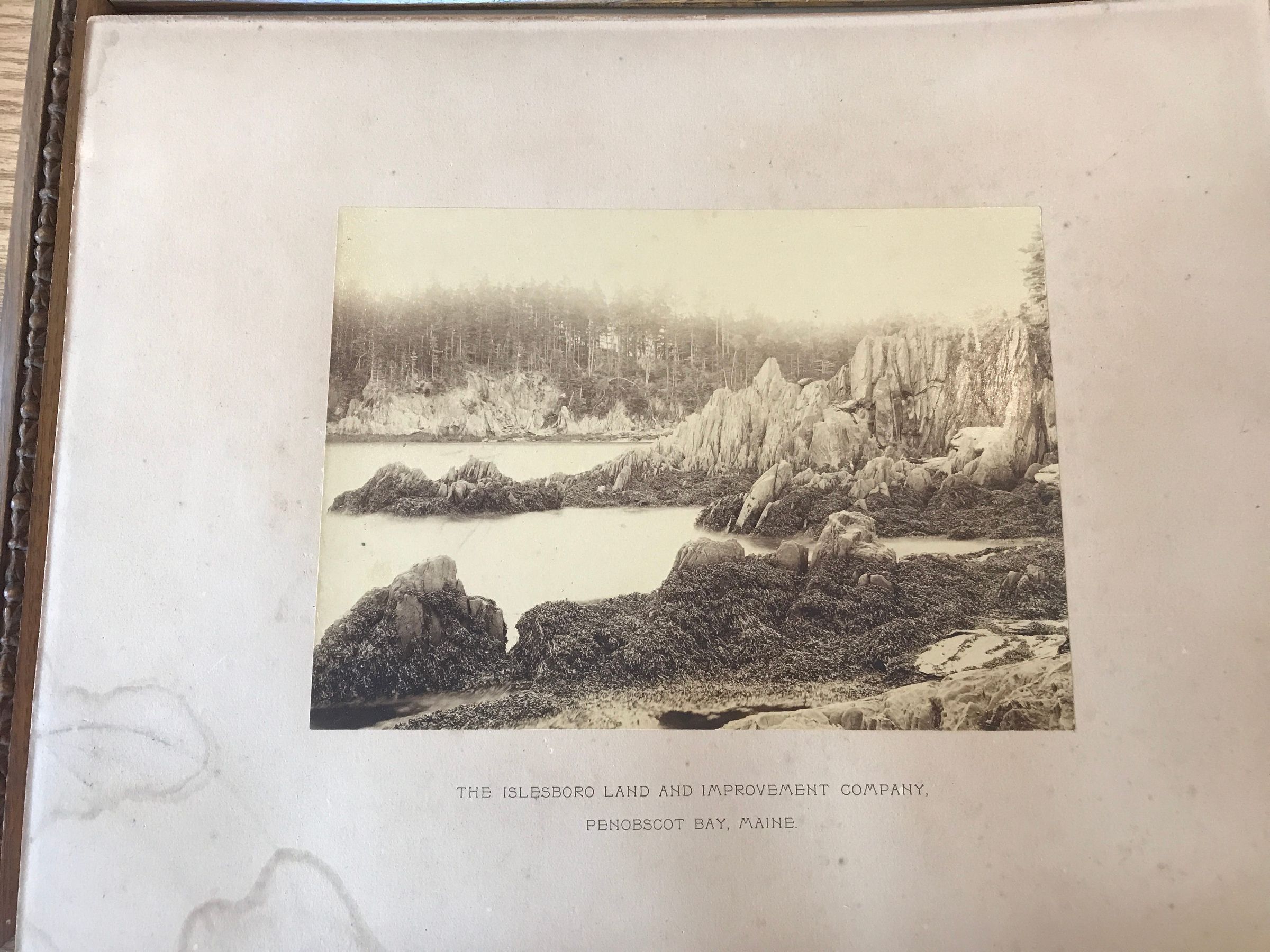 Two b/w pictures, one framed, of Islesboro scenes. Inscription under each picture: "The Islesboro Land and Improvement Company. Penobscot Bay, Maine." Possible advertising?