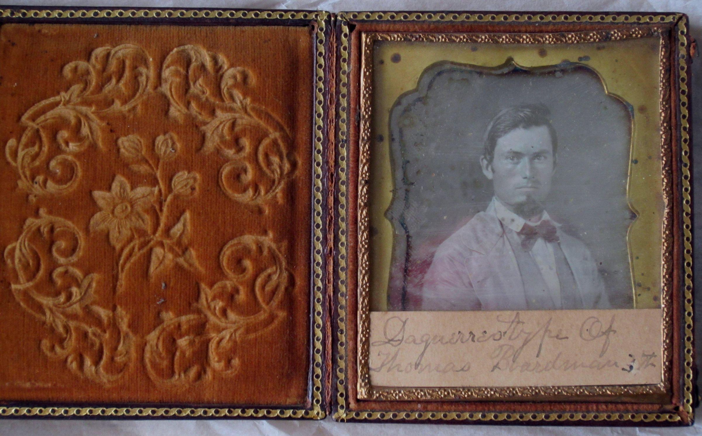 3x5" tooled leather hinged case with daguerreotype of Thomas Boardman 3rd (1828 - )