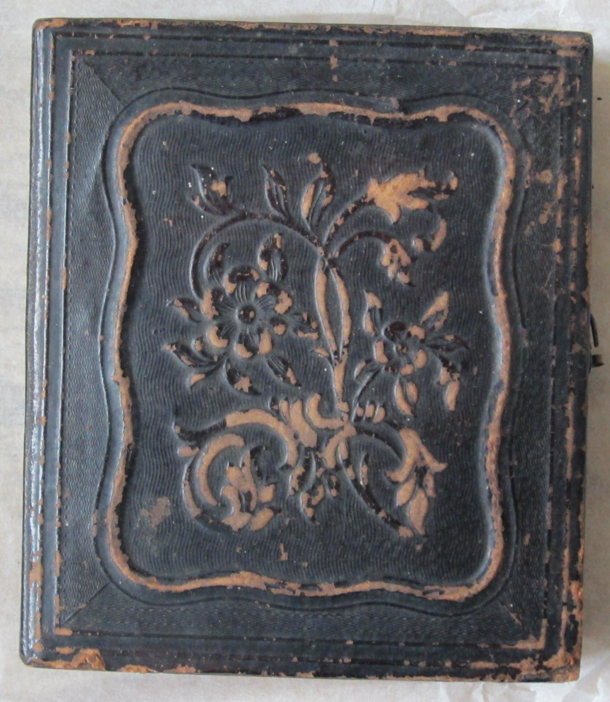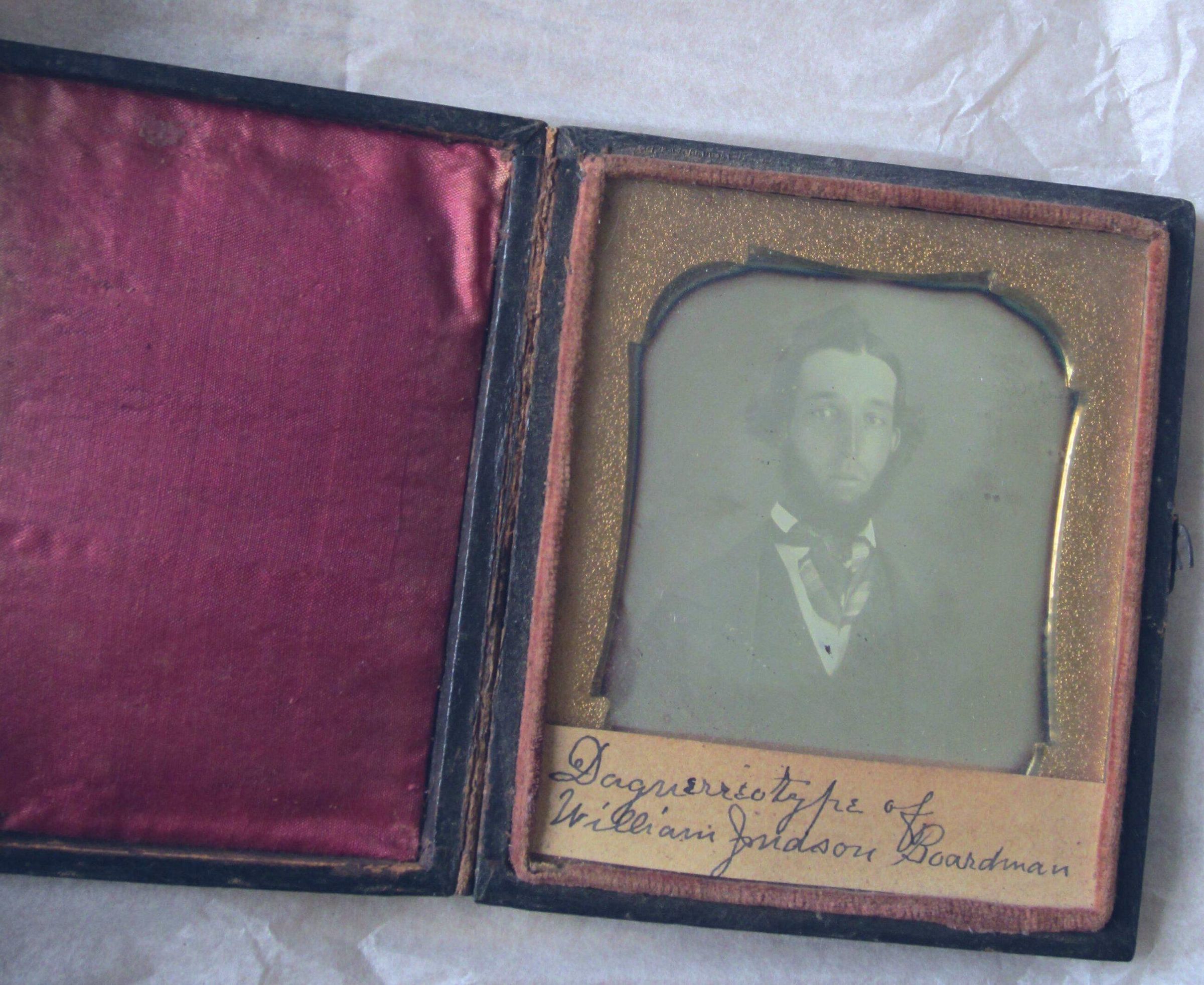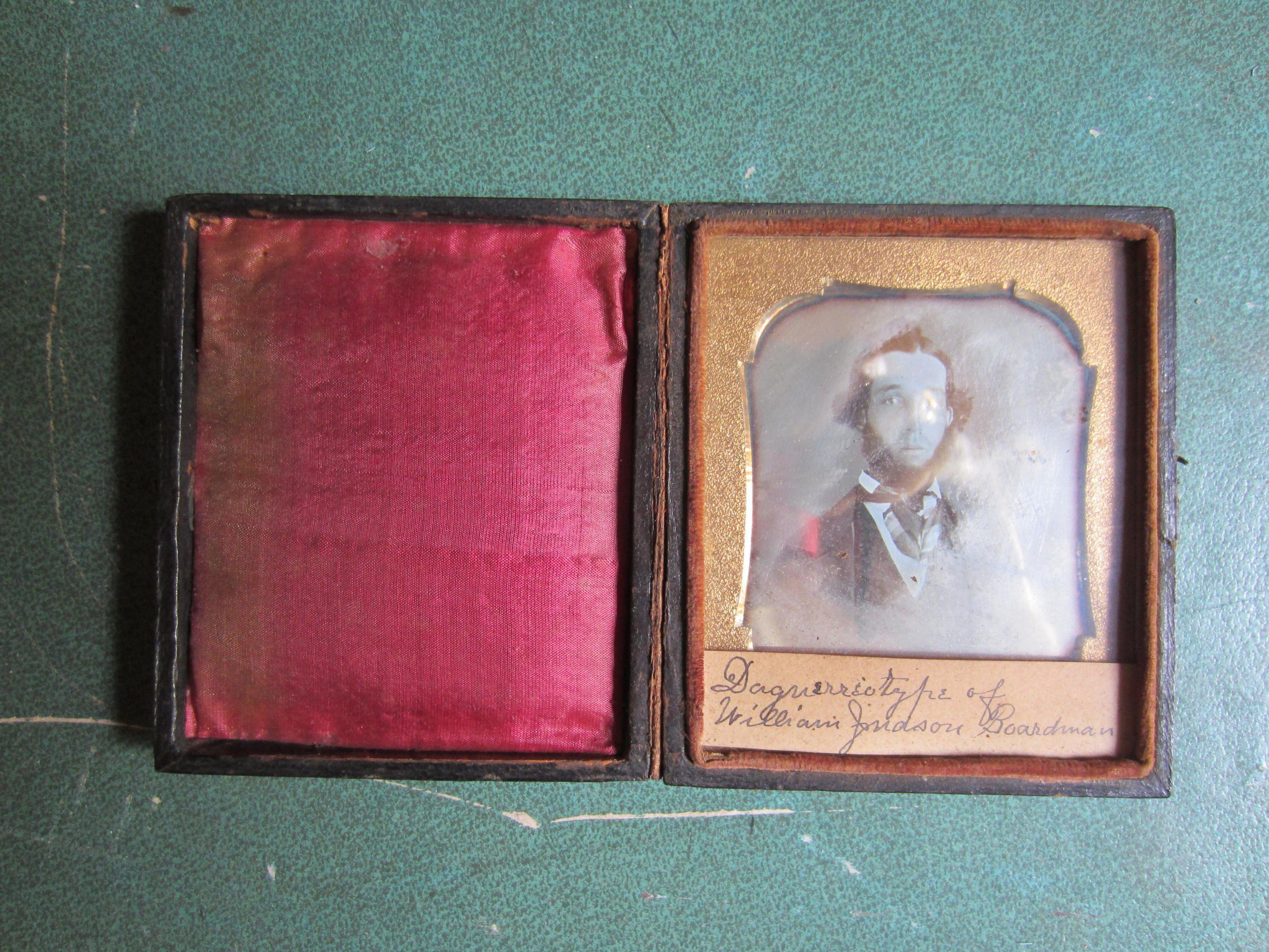 3.25 x 3.75" leather tooled case with daguerreotype of William Judson Boardman