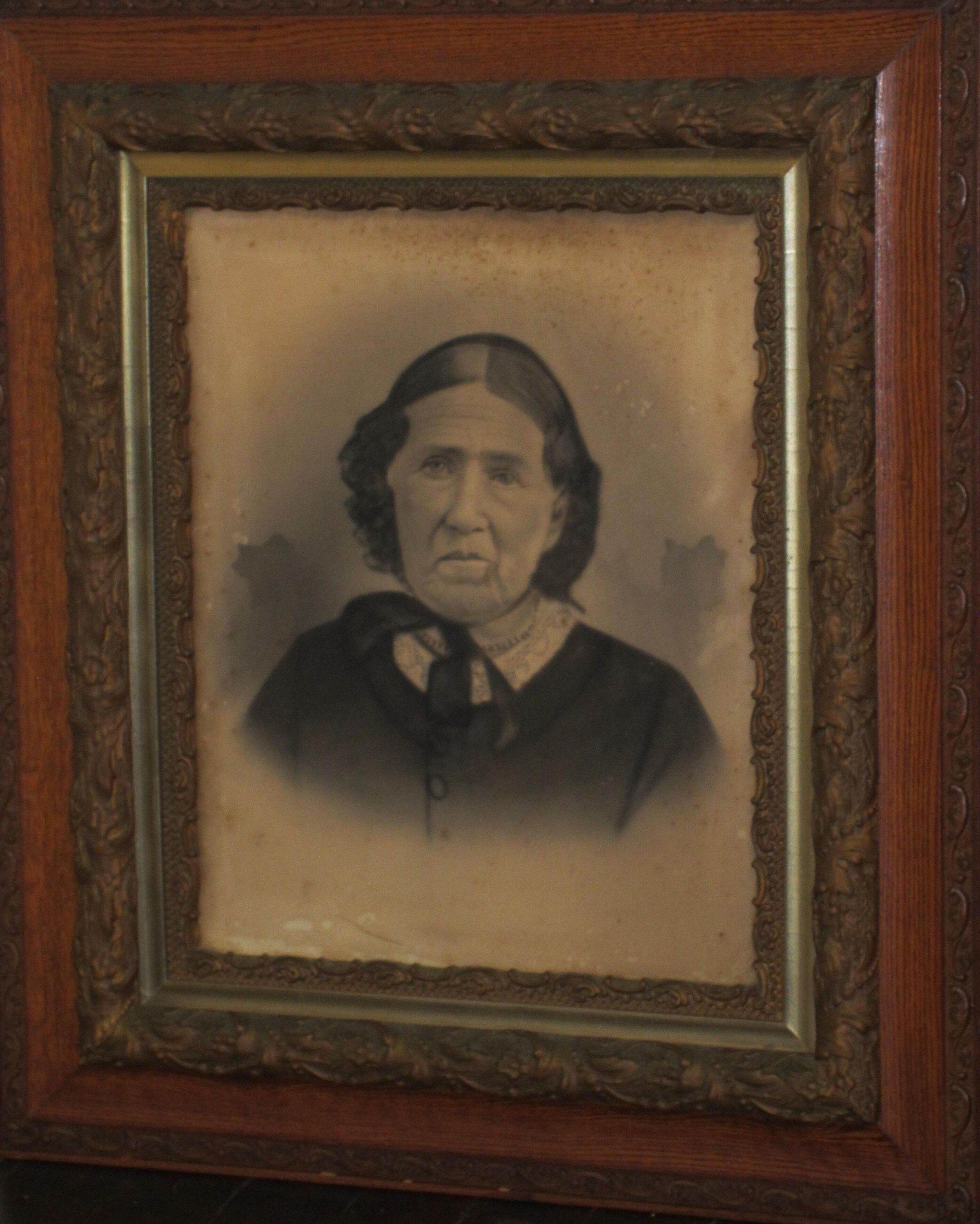 Portrait of Mary Townsend Hatch (Mrs Deacon James Hatch) b. 6/9/1801, d 8/1/1876, great great grandmother of the donor. Family lore is that she was part indian.