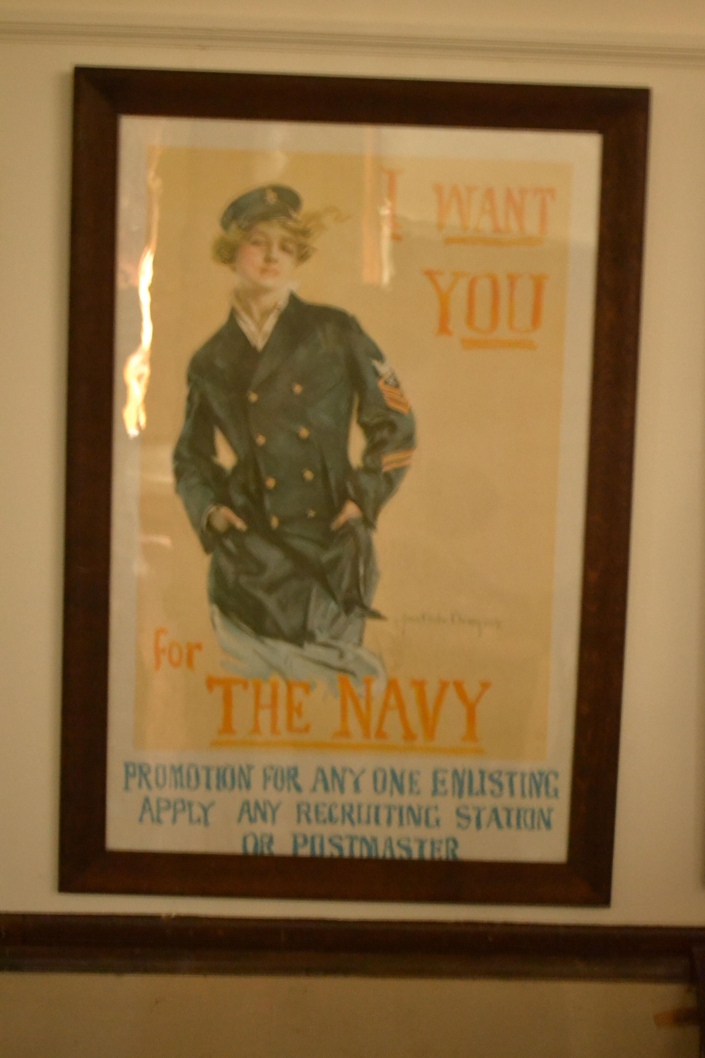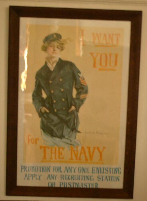 WW2 Navy poster recruiting women "I WANT YOU for THE NAVY - Promotion for Anyone Enlisting" showing a very feminine young woman in uniform. c 2' x 3' framed