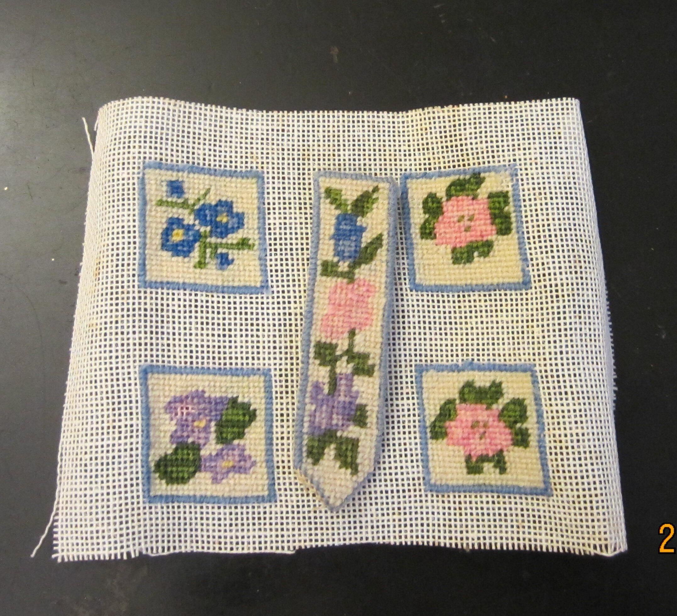 Small petit point, uncut, intended as runner for diningroom table and as cushions for chairs