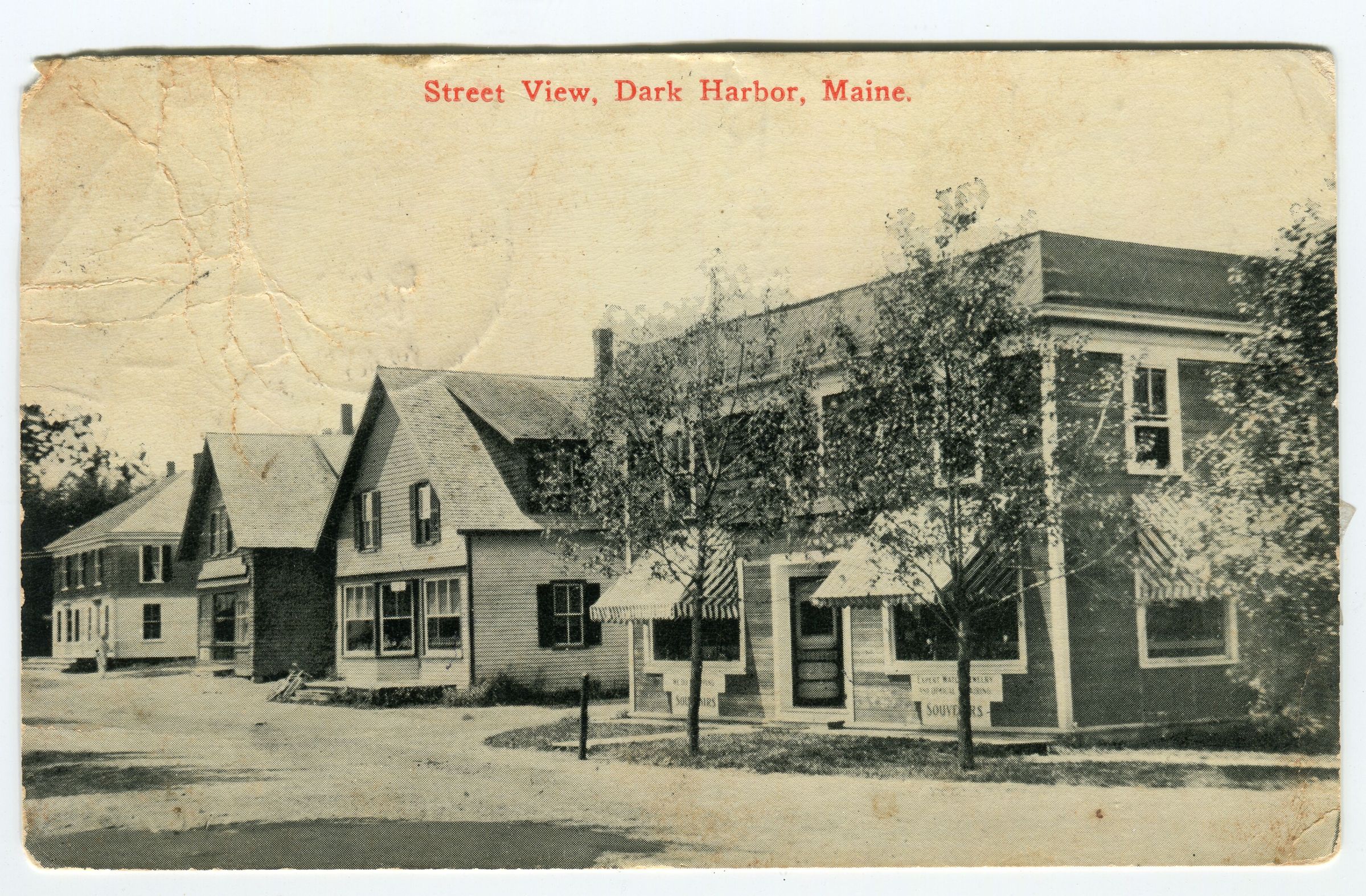 Street View, Dark Harbor, Maine. Postcard addressed to Miss M. Pendleton, 789 Boylston St., Brookline, Mass. Dear girls, write to ___[?] often. I hope you are getting on all right. We miss you very much. love, [Mother?]