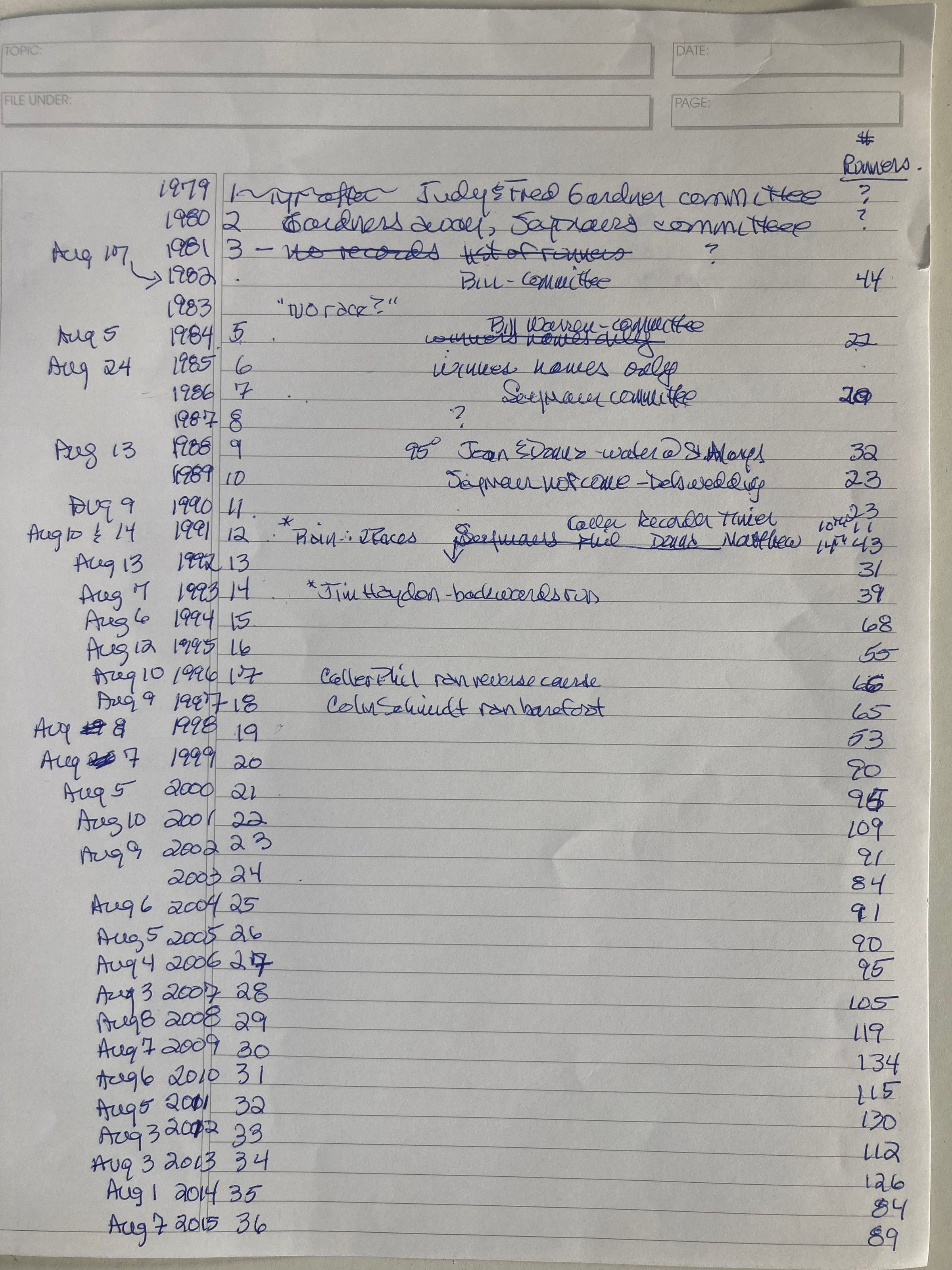 Annual results of the DHS Ice Cream Race, participants and times for the years 1979-2019.