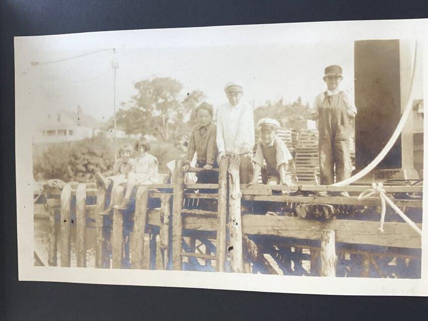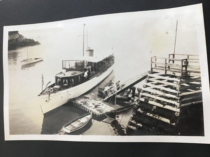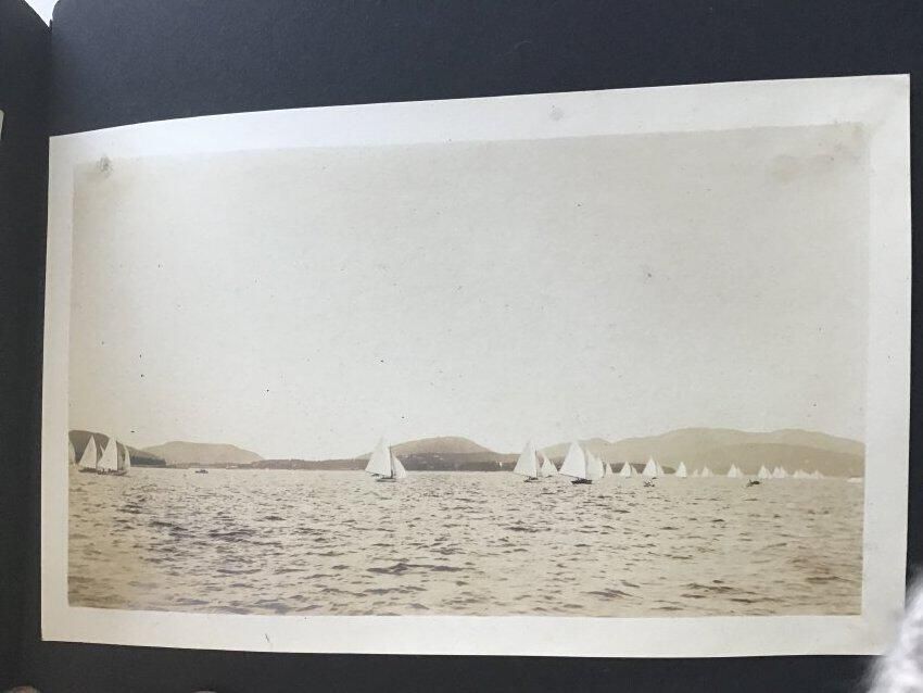 Photos of the Bertolet House at the end of Hewes Point Rd (burned in 1960), Elkhorn motor yatch, various boats and sailboats.