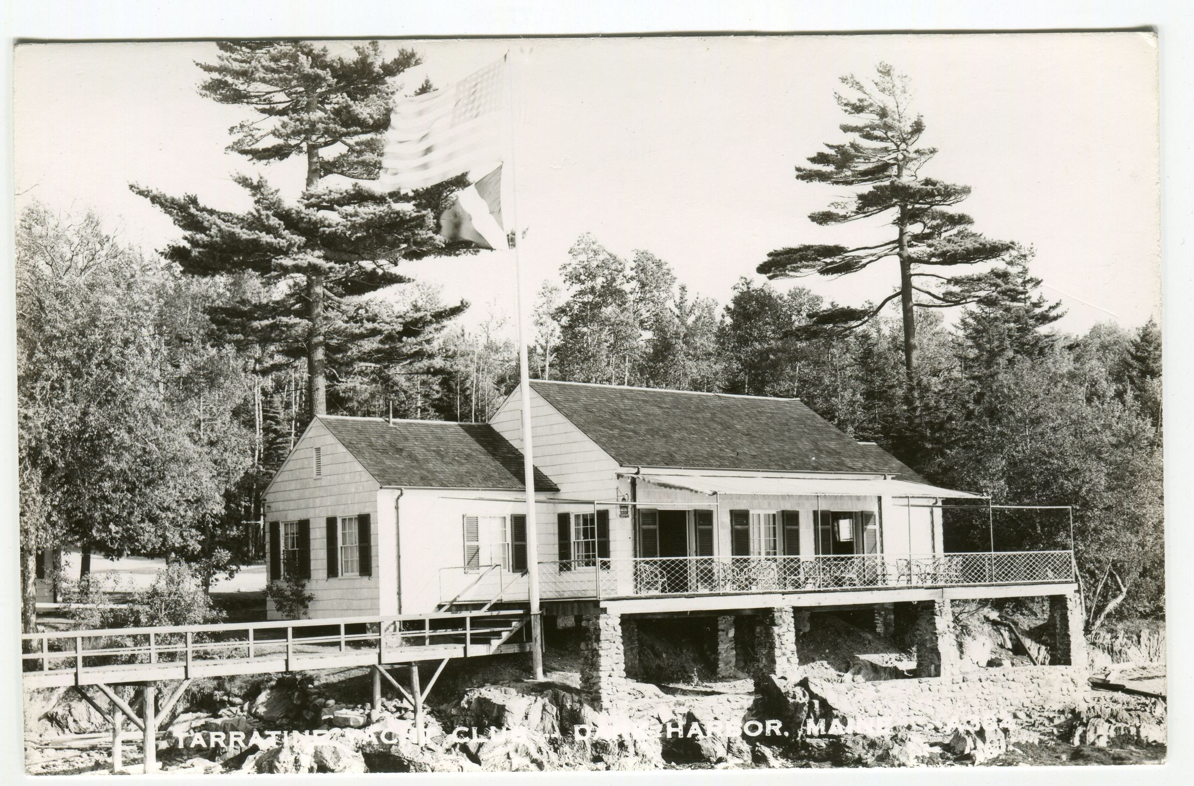 Postcard with b&w picture of "Tarratine Club, Dark Harbor, ME" showing building which is now the yacht club building. Date could be 1950 or 1990. Through Maine Memory Network we received this note: "1917 Lloyd's Register of American Yachts lists the Tarratine Yacht Club as having been organized in 1896 and incorporated in 1909 in Dark Harbor."