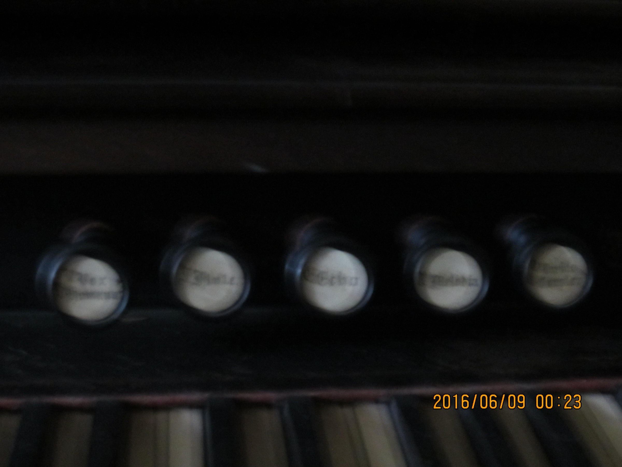 Each key has a brass reed tuned to the appropriate note; these reeds can be pulled individually for tuning. Reed organs usually have more than one set of reeds (ranks) with differing pitch and tonality.