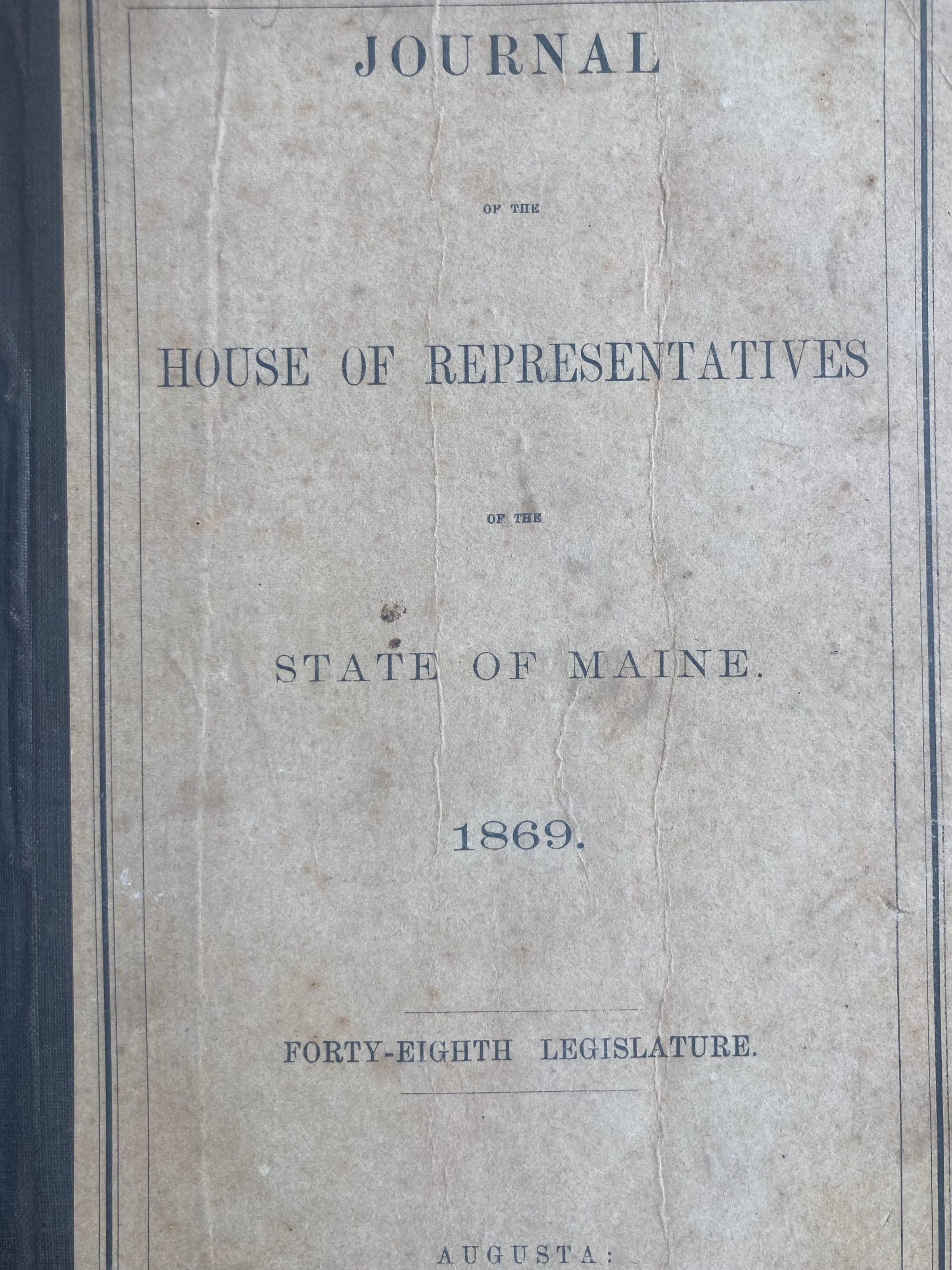 Journal of the House of Representatives of the State of Maine, 1869. Cover inscription: C. W. Sherman, Islesboro.