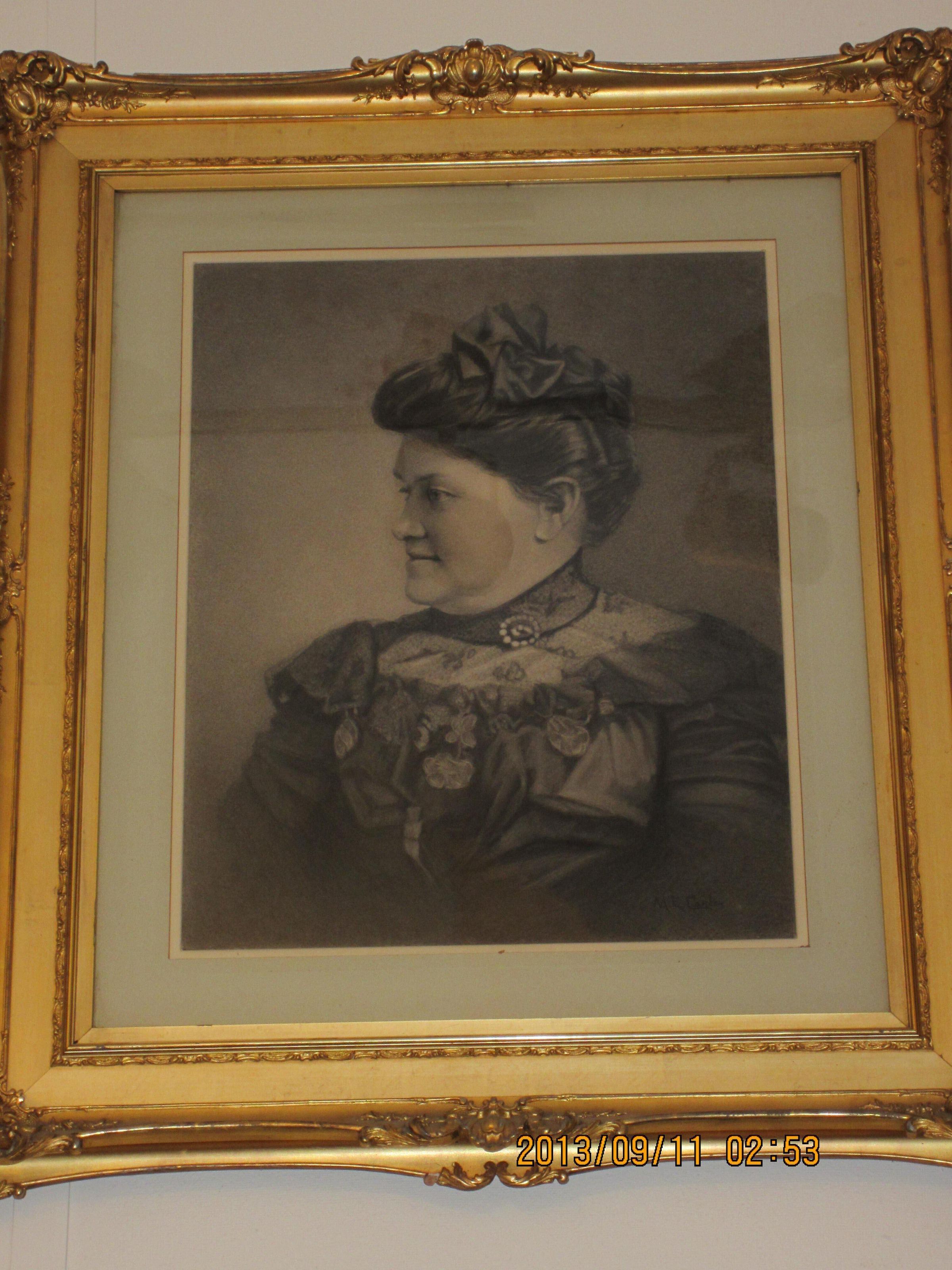 Portrait of Sabrina Seely Brown Pendleton (5/24/1840- ____ ), matted and framed in ornate goldleaf frame, overall size c 2' x 3'