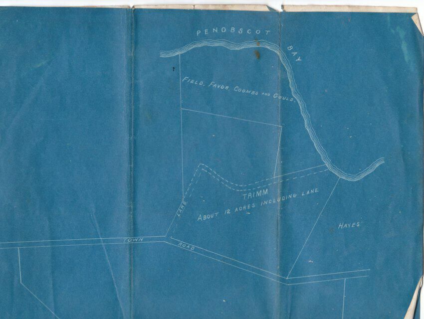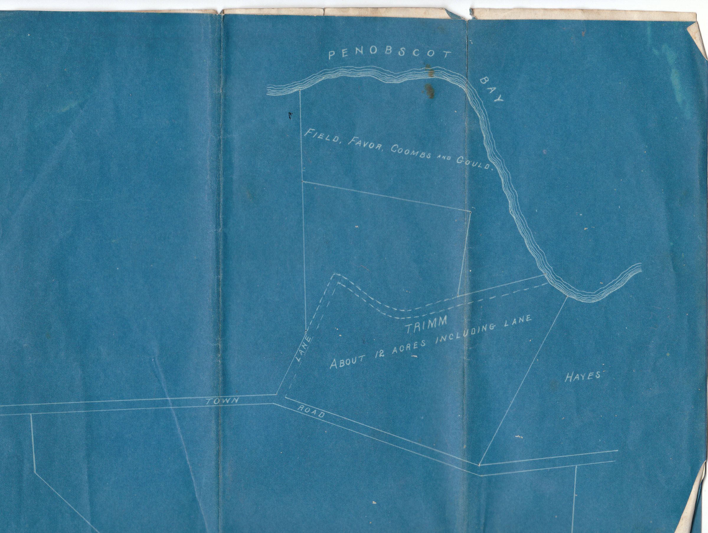 Rough plan showing survey for approximate acreage only, made for R. B. Trim and Otis Dodge, Aug. 19th, 1895. Scate 200ft. to an inch. P.H. Coombs, Civil Engineer, Bangor, Maine.