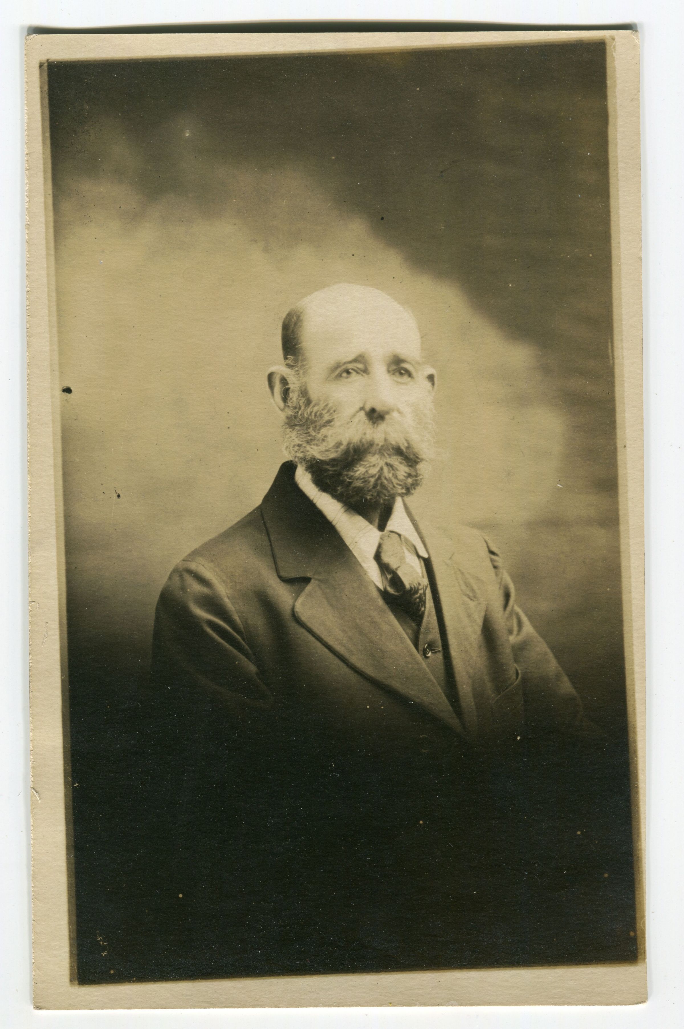 Studio portrait card. Identified on the back: "John Bentson with whiskers" [Benson?]