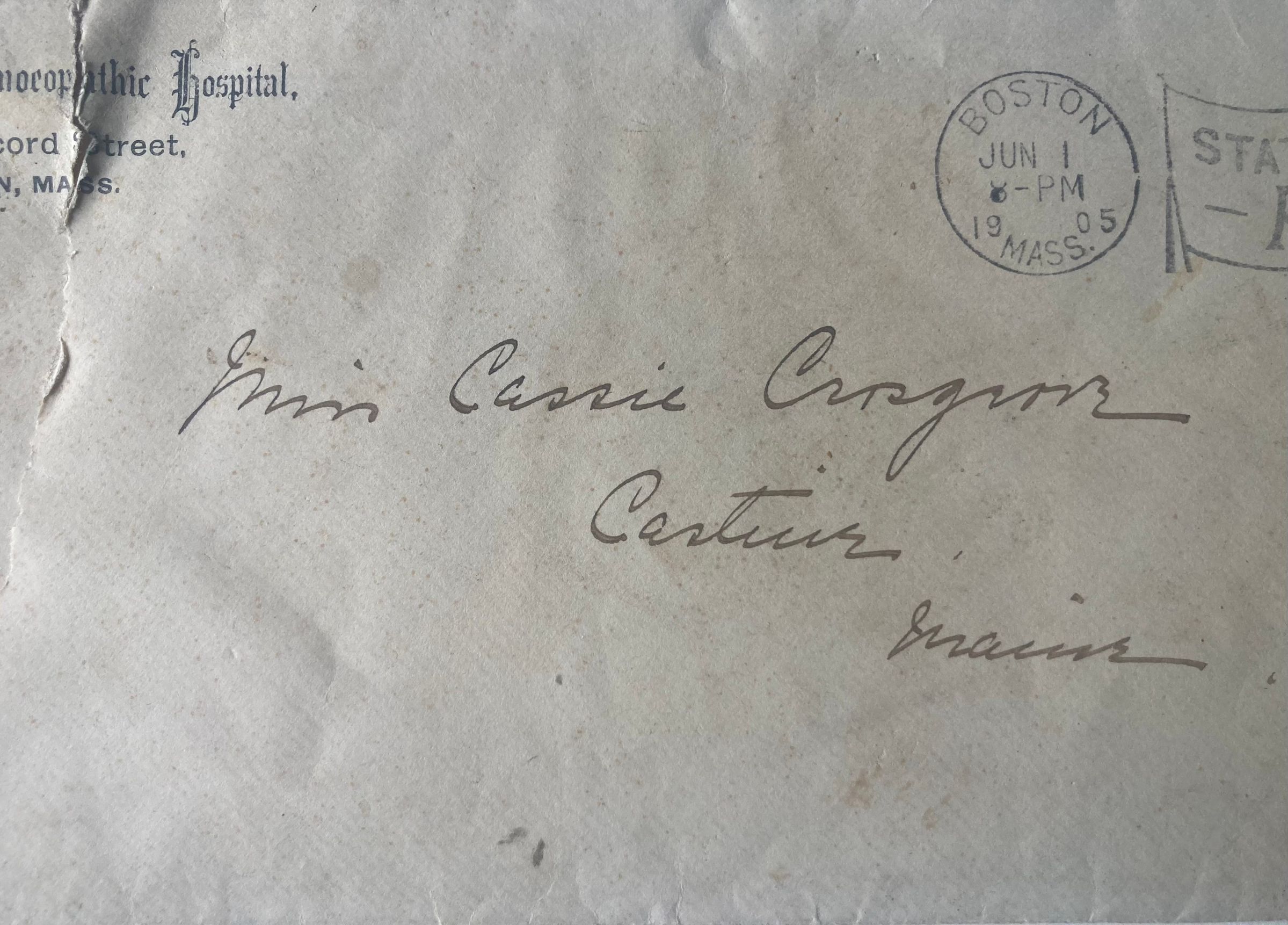 Prospectus of the Training School for Nurses of the Massachusetts Homeopathic Hospital, Boston, Mass., mailed to Miss Carrie Cosgrove (Elizabeth Ladd's mother), Castine, Maine, June 1, 1905.
