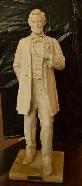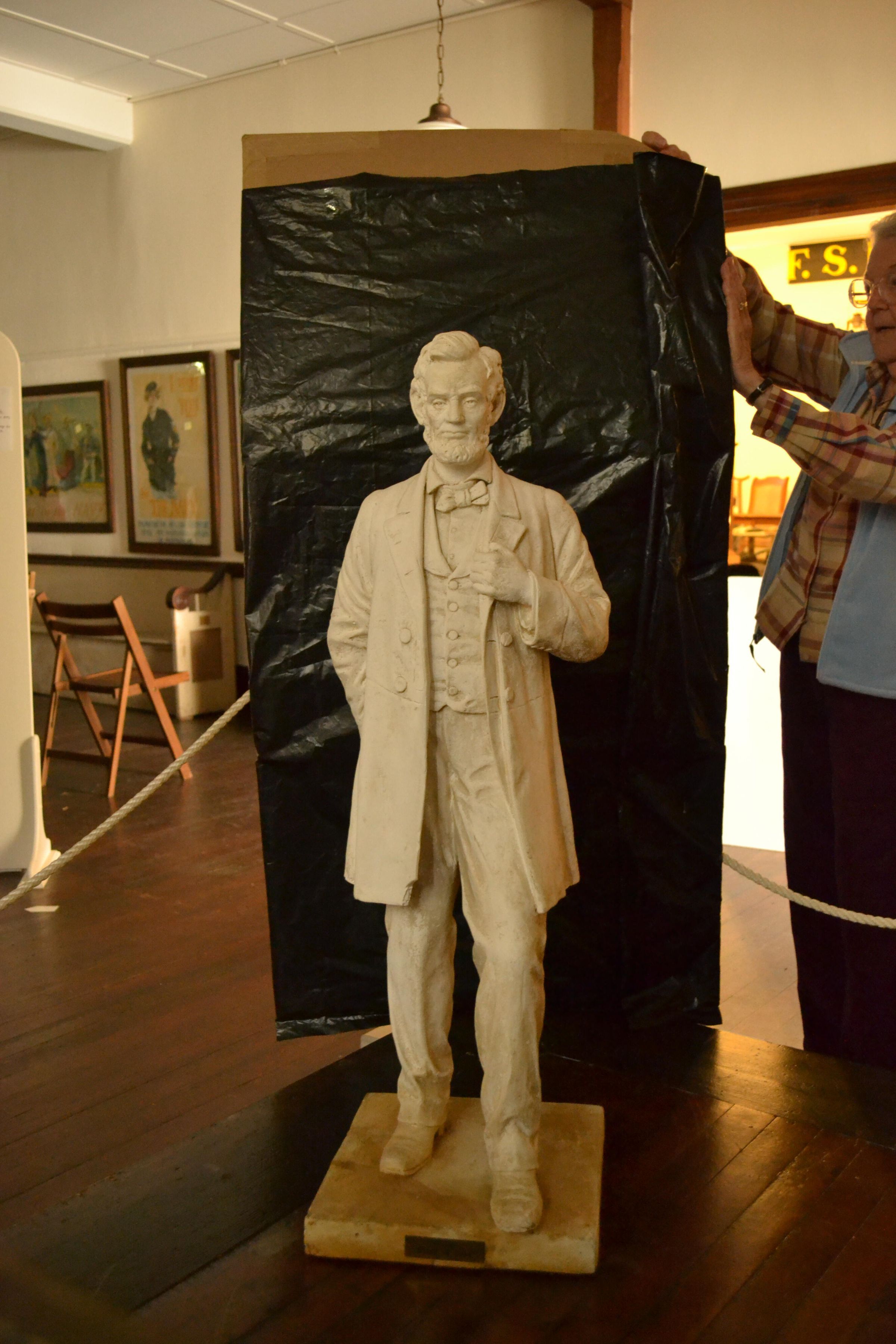 Statue 39 inches tall on a base 2 inches high. White statue of Abraham Lincoln standing with one foot forward, left arm touching the lapel of his coat, the right arm held in back. Clothing, hair and beard style of the 1800's. SPECIAL SIGNIFICANCE: Plaque at base reads "PRESENTED BY THE CLASS OF 1914" (The high school was in the present Islesboro Historical building.)
