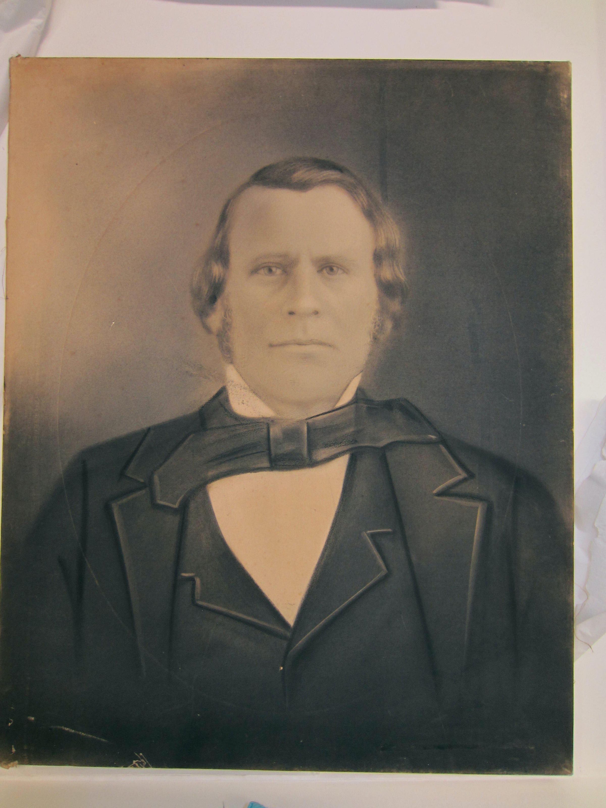 Portrait of a man, 16" x 20" unframed. Technique photo/charcoal. Presumably an islander. Technique was popular 1880-1910. See 2006.031.002 for matching portrait of a woman.