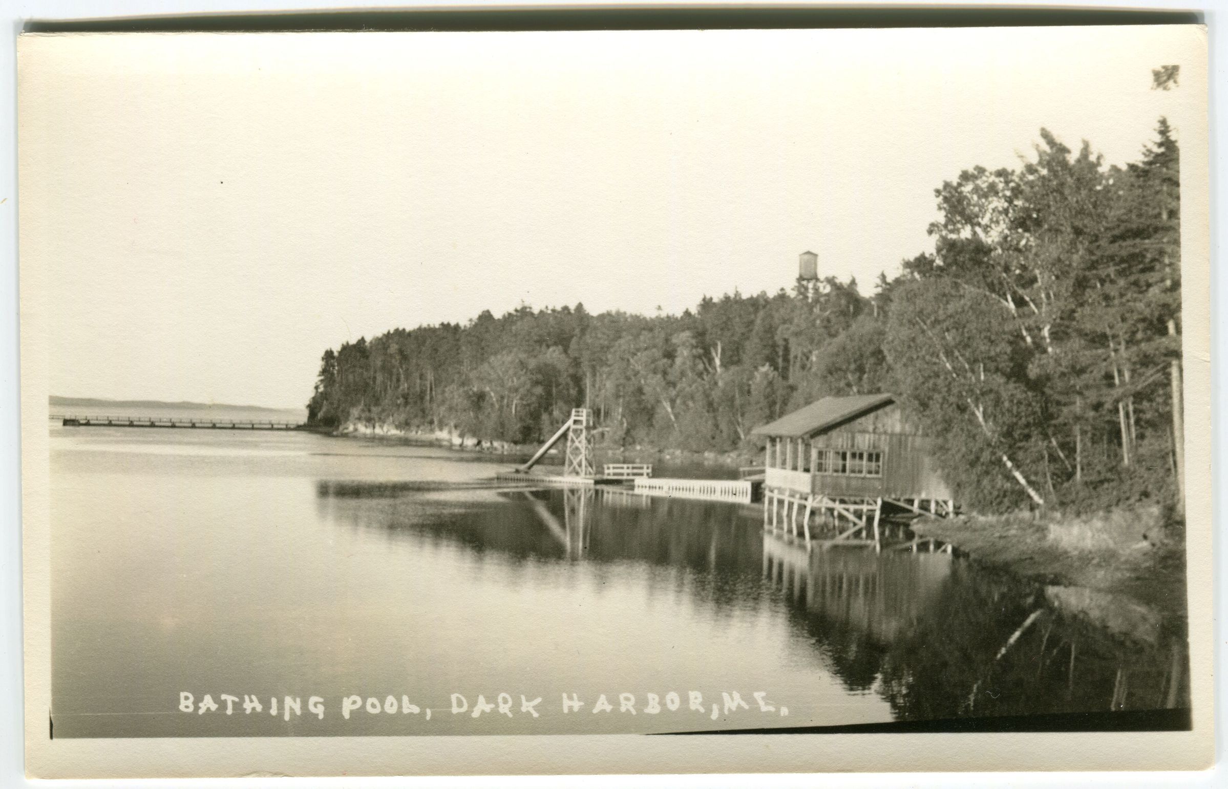 Postcard showing Dark Harbor Pool. Written on front is "Bathing pool, Dark Harbor. ME."