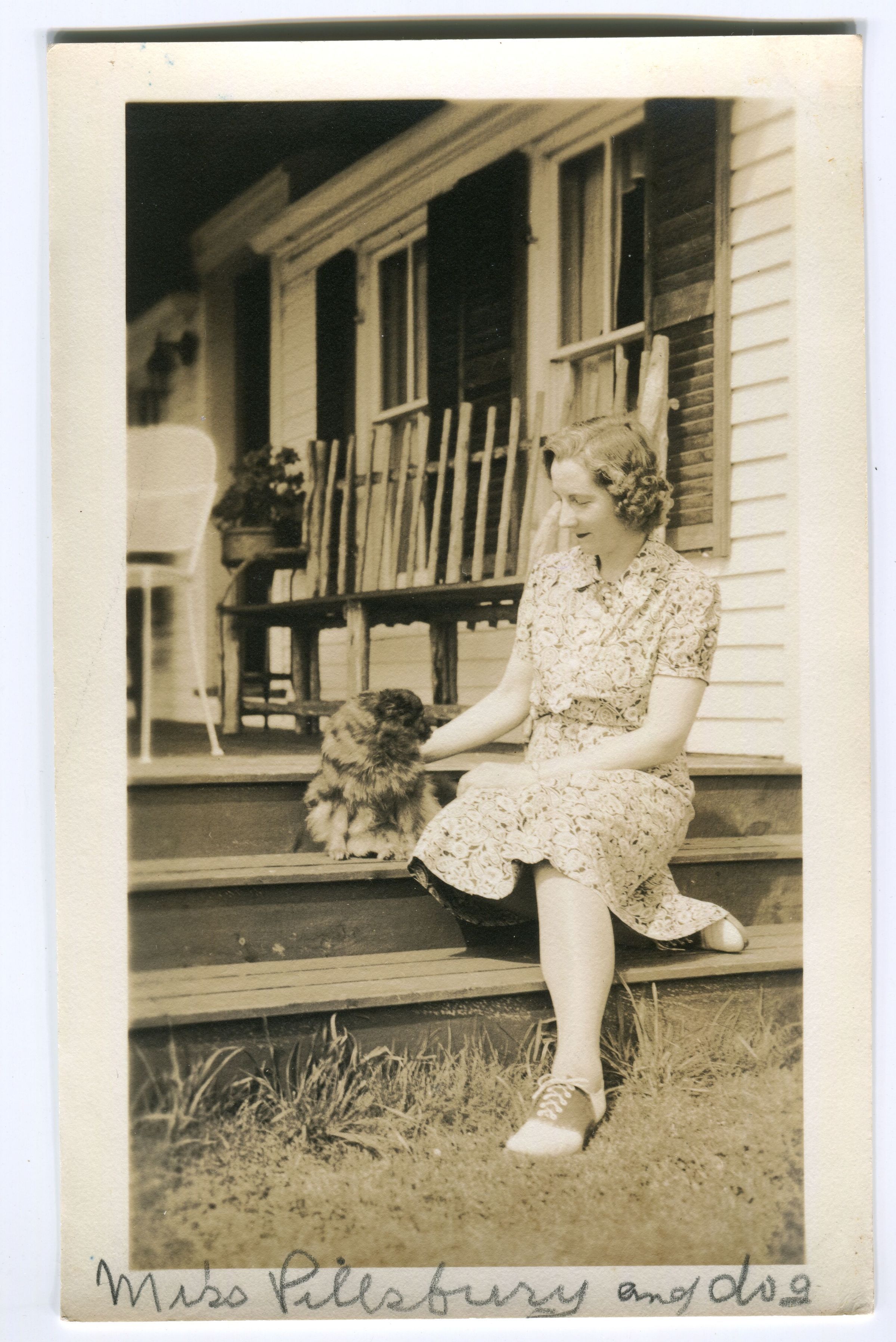 Postcard of Miss Pillsbury and dogEntry/Object ID