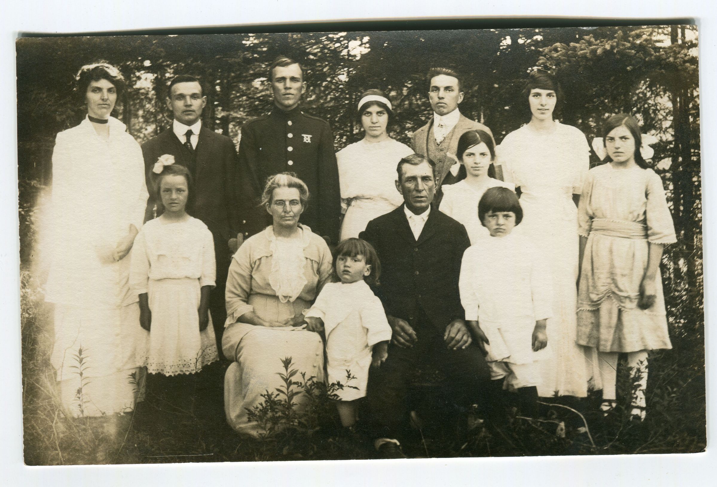 Description from larger print of same photo in the museum: Yeaton family, circa 1917. Marine Corp Sergeant Guy Malcolm Yeaton was the only soldier from Islesboro to have been killed in action during WWI. He is buried on the lawn of the Alice L. Pendleton Library, near the memorial flag.