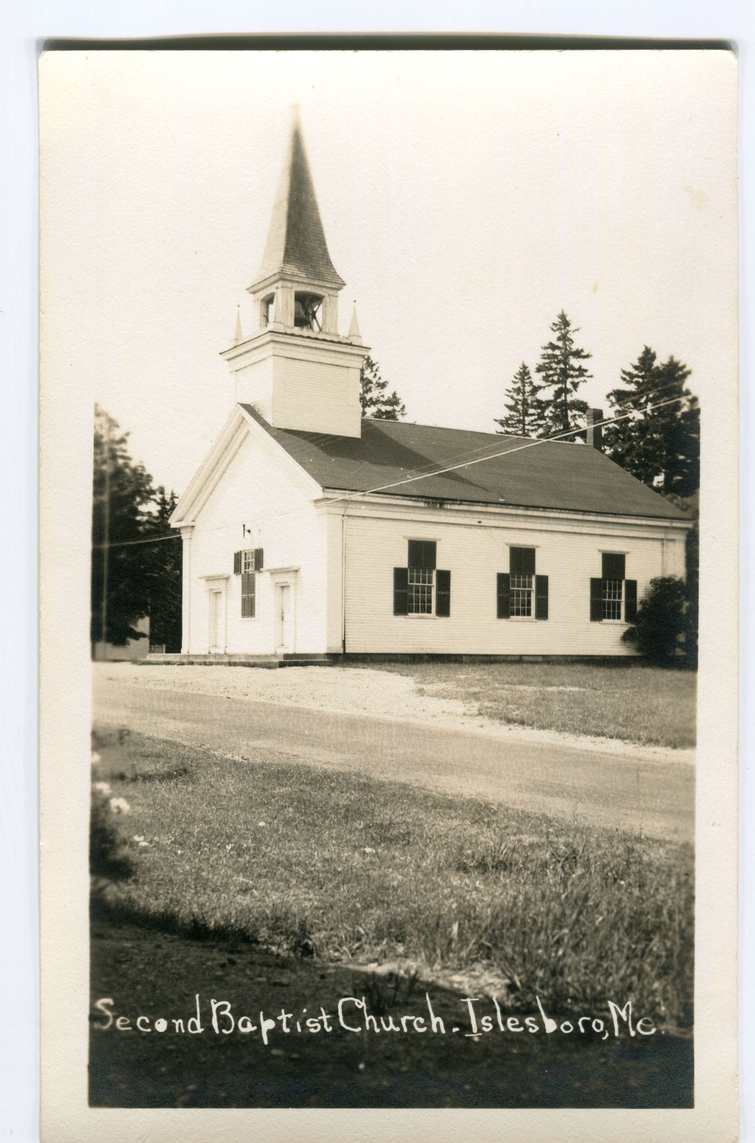 "Second Baptist Church, Islesboro, Me." Cropped duplicate included.