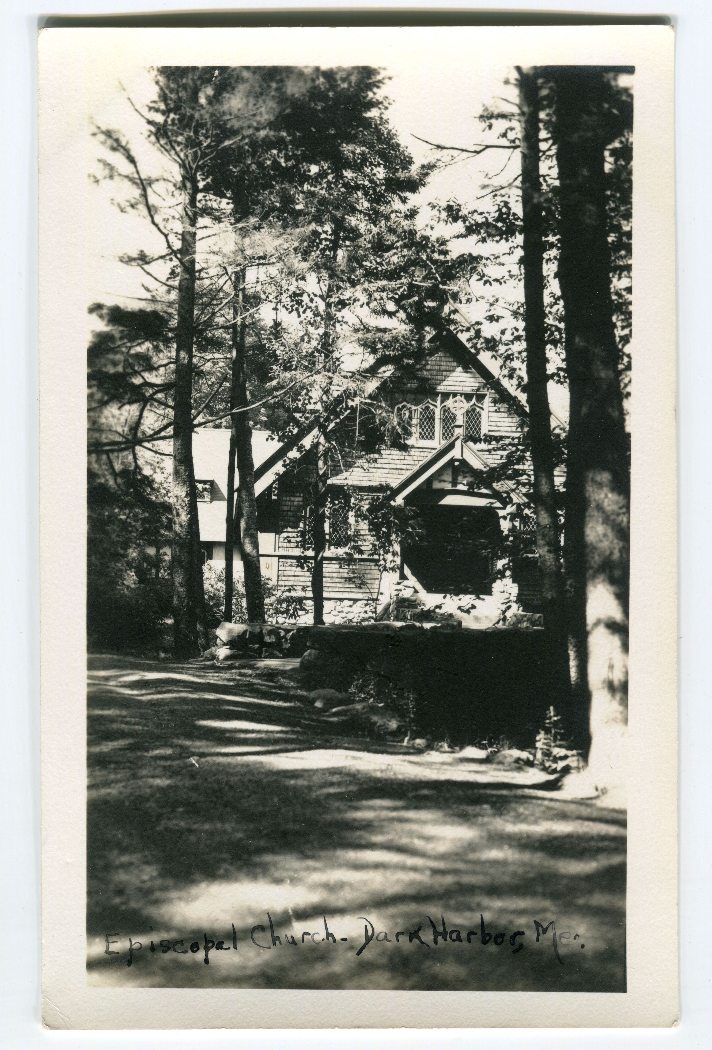 Christ Church. Lettering in black on the front "Episcopal Church, Dark Harbor, Me. One duplicate reversed image, with the lettering in white reading backwards.