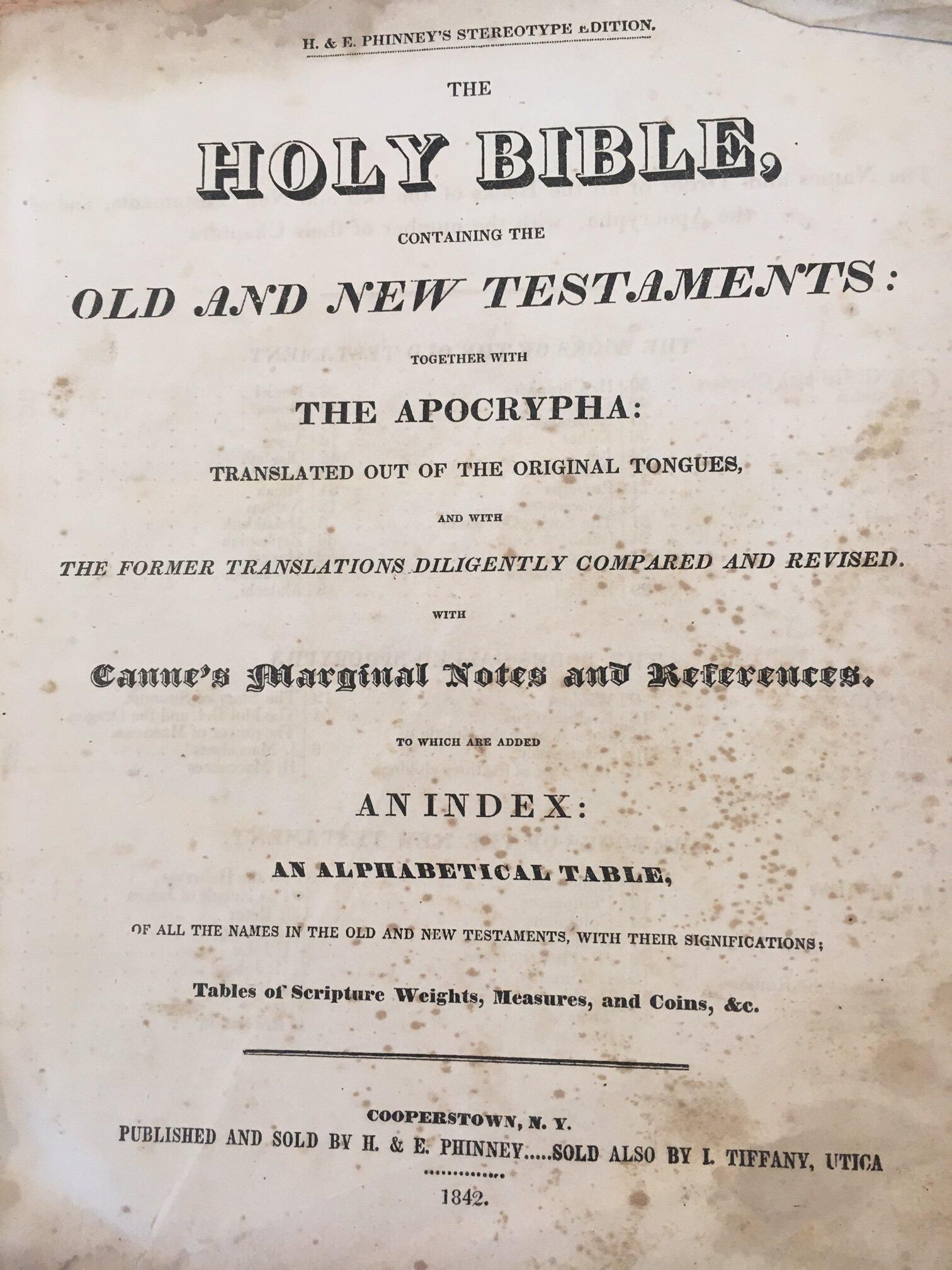 One of the Phinneys series of sterotyped quarto bibles of which 138 editions were published between August 1822 and winter 1848.