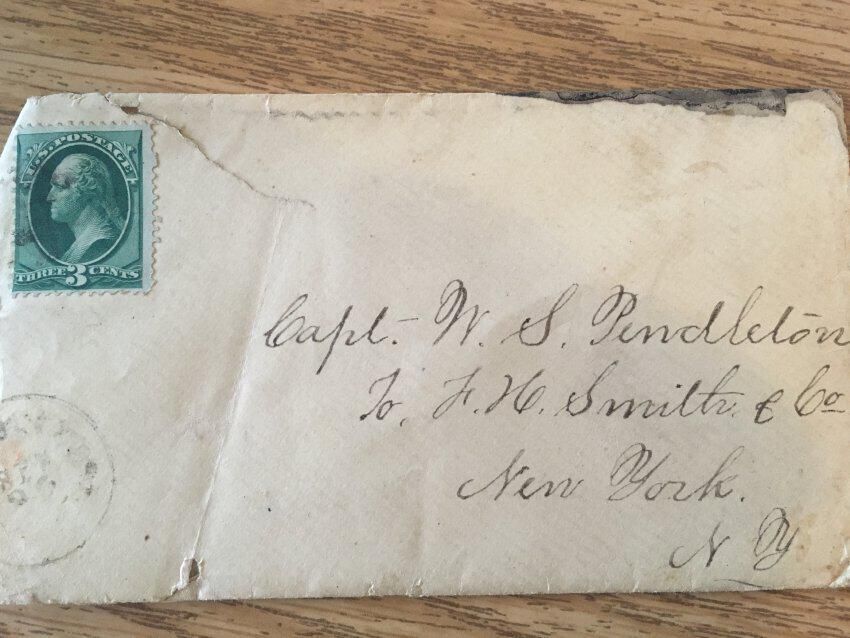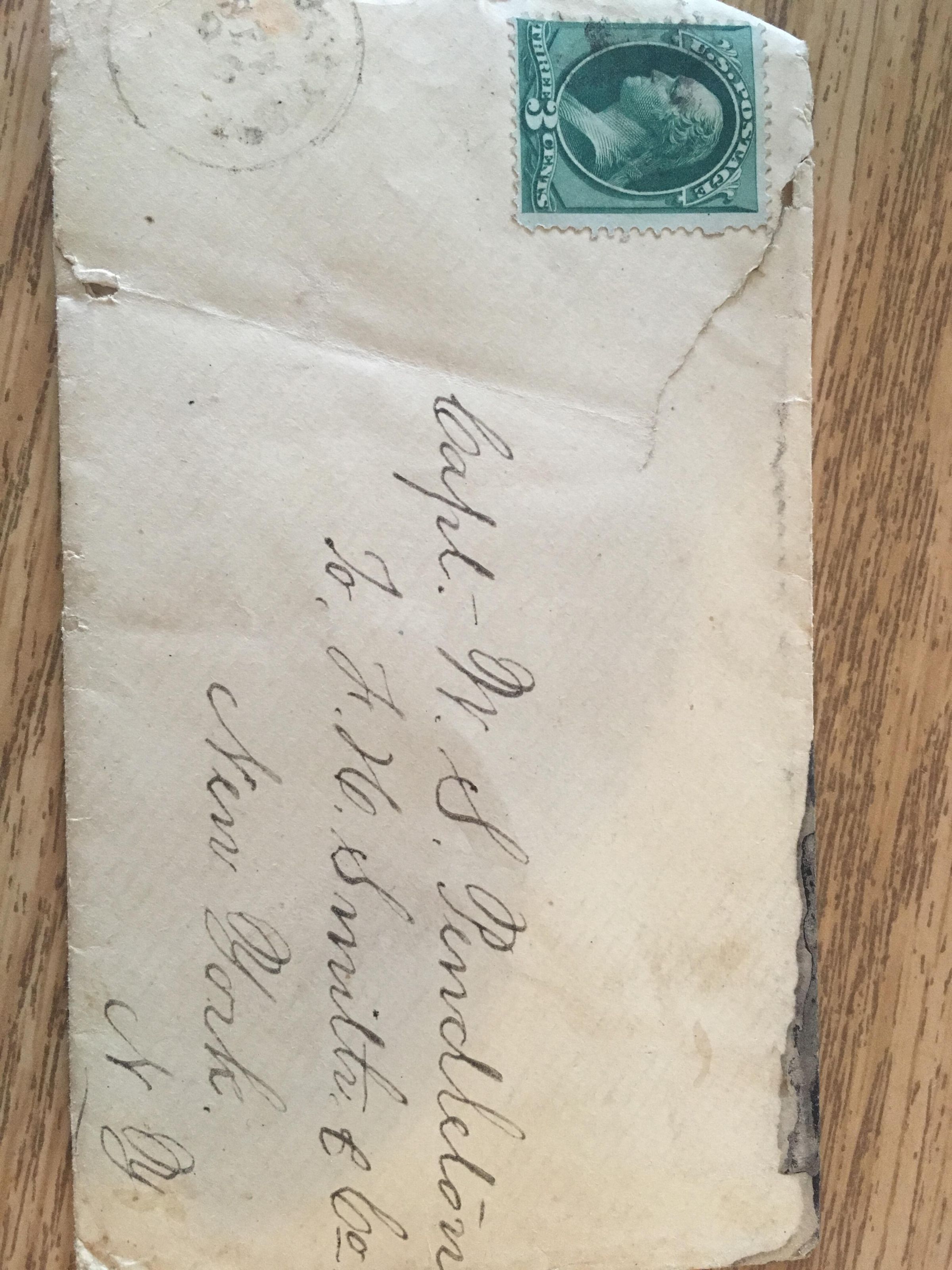 Stamped envelope, contents missing, from Capt. W. S. Pendleton to F. H. Smith and Co., New York. Postmarked as received New York, Sep.27, 7 a.m., [18]78.