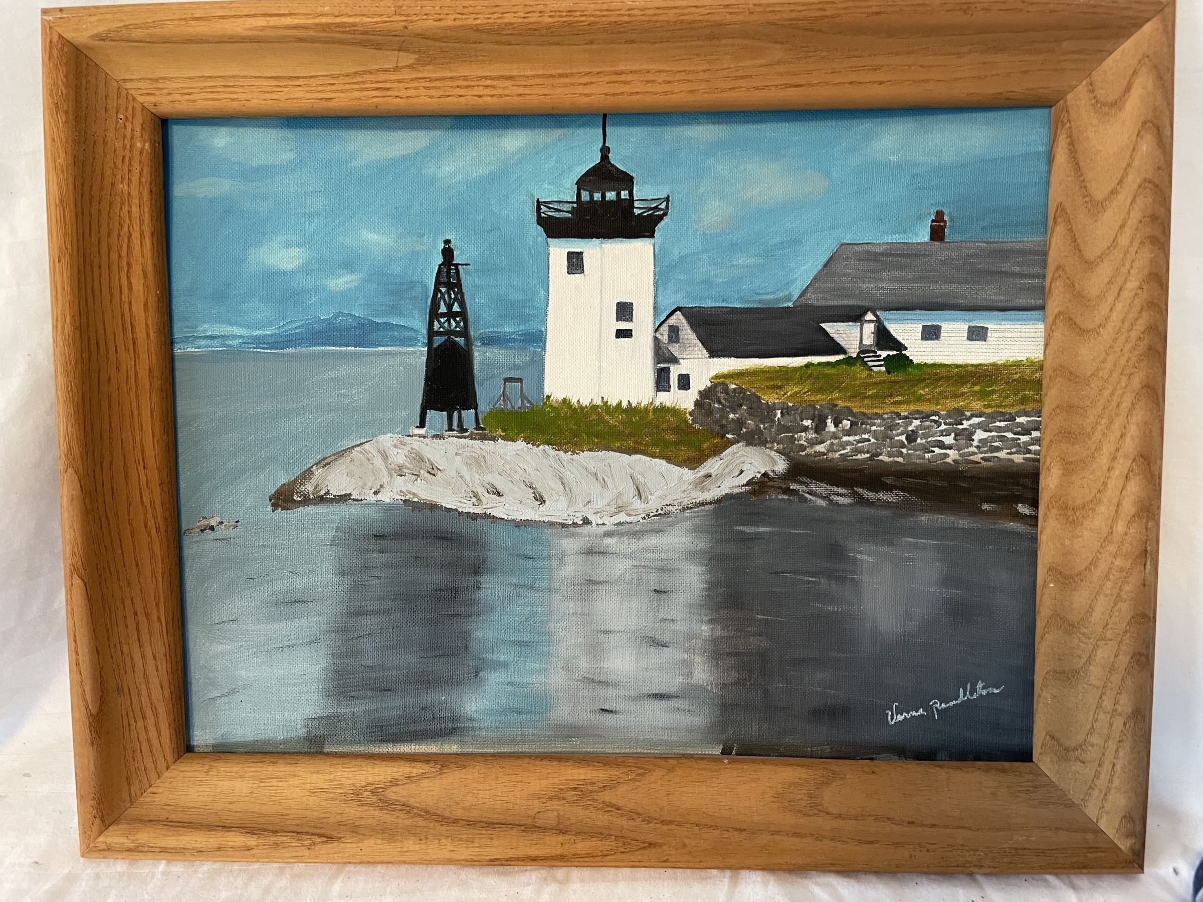 Framed Painting of Grindle Point Lighthouse, by Verna Hale PendletonEntry/Object ID
