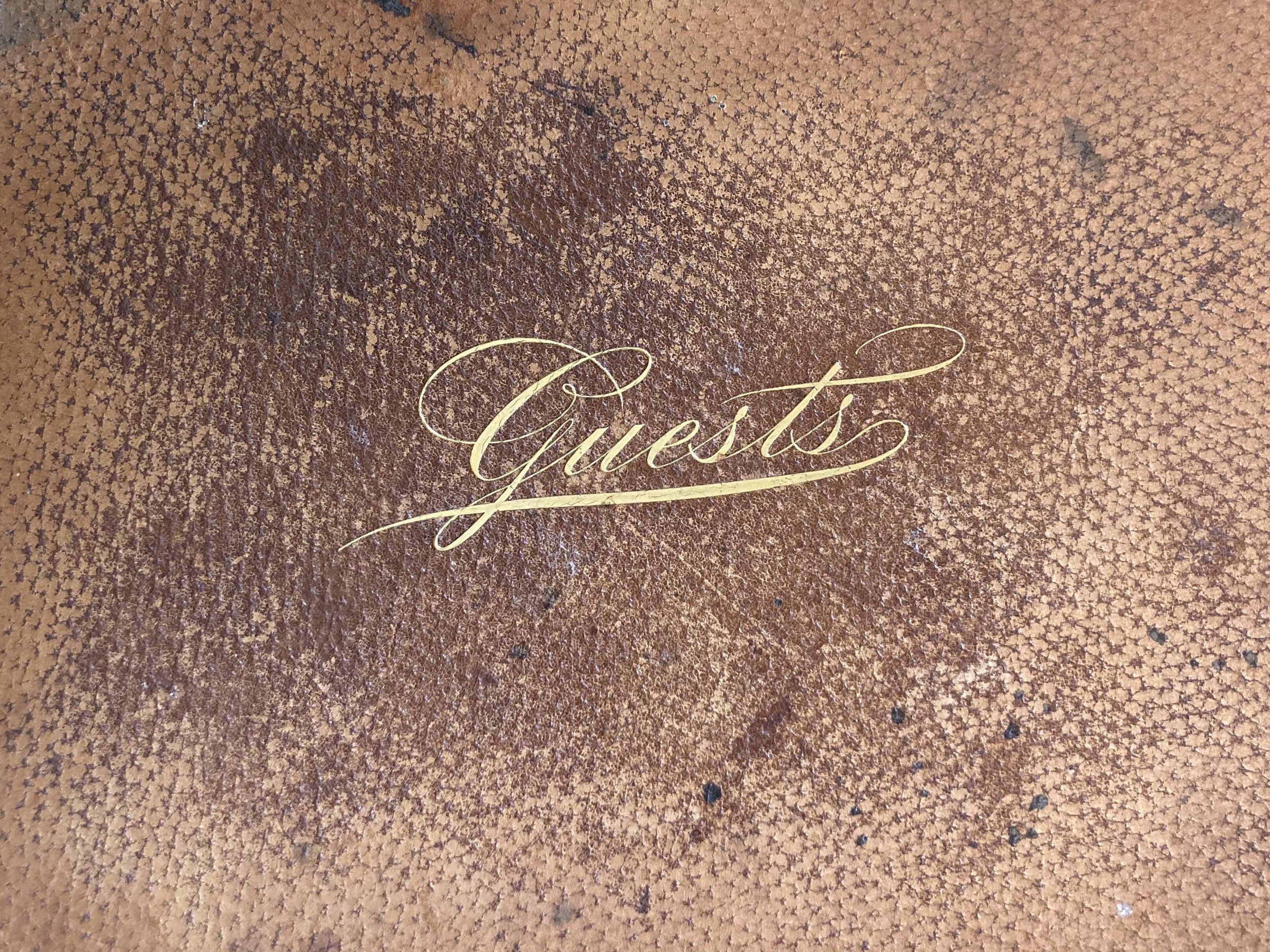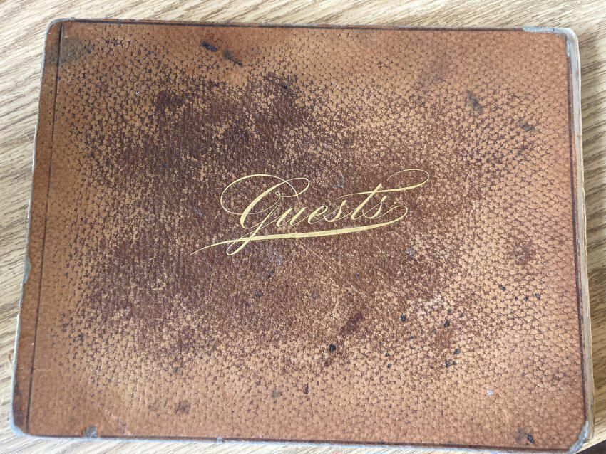 Leather-covered guest book for Gull Point, down island. Signatures date from July 20, 1904, to August 1930. Inscription on first page reads: