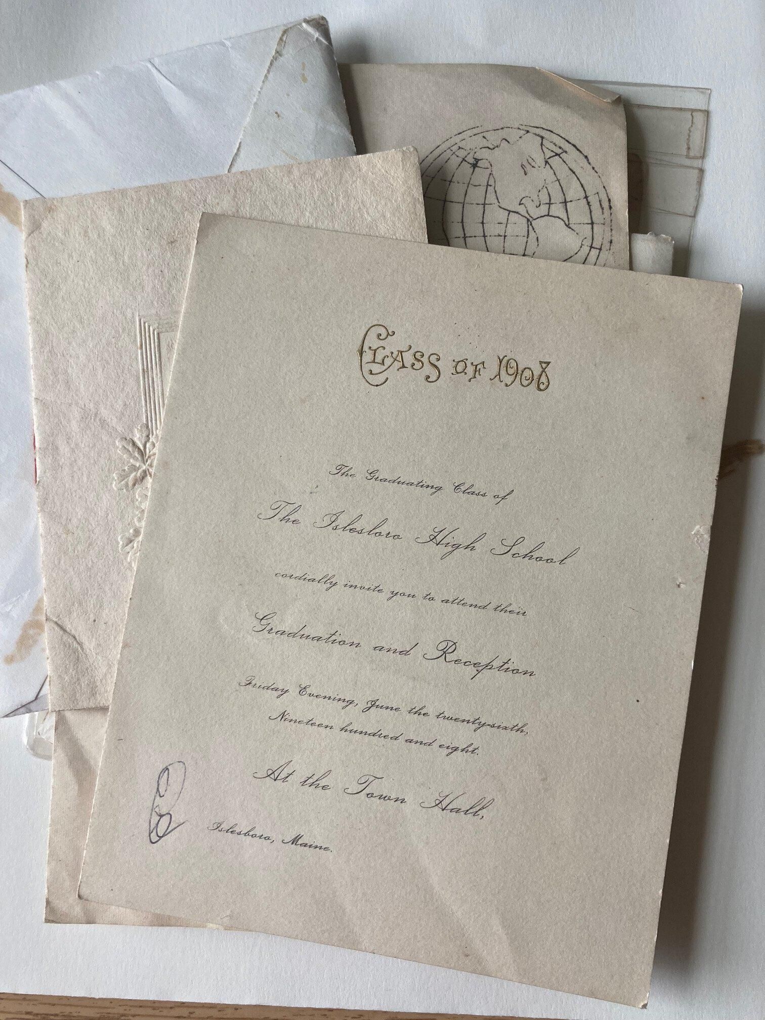 (a) Six invitations to graduation exercises for the classes of 1908, 1910, 1940, 1951, 1958, and 1960, with two accompanying pupil cards (undated).