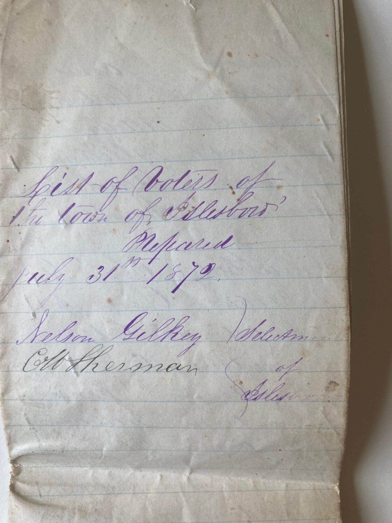 List of voters of the town of Islesboro prepared July 31, 1872; corrected Aug 10, 1872