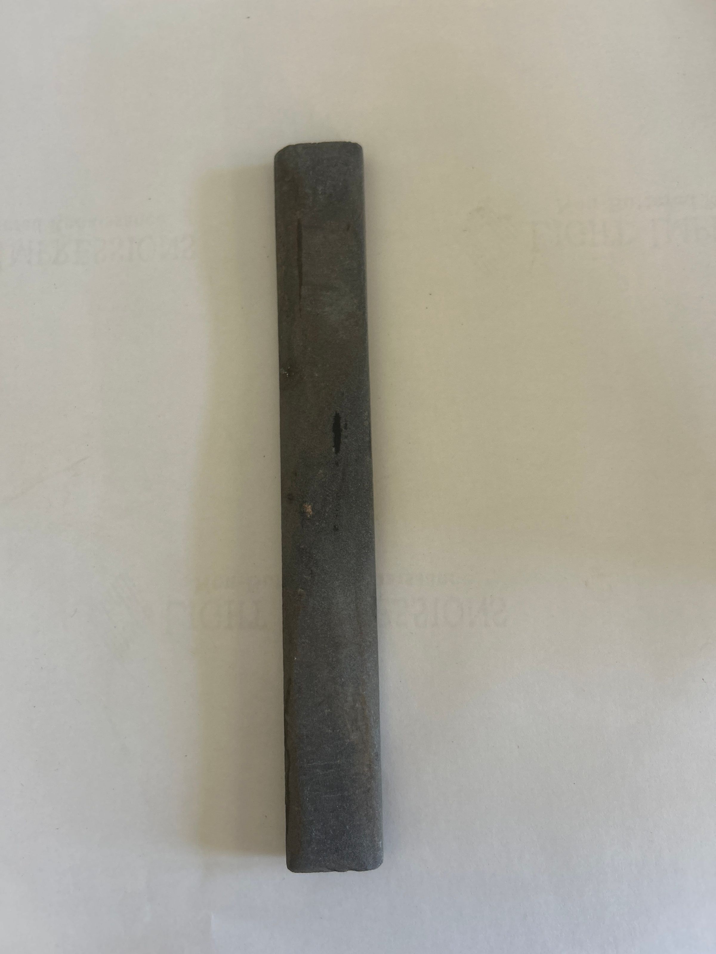 9 7/8 inches x 1 1/4 inches x 1/4 inch stone with two worn areas approximately 1 - 2 inches from either end.