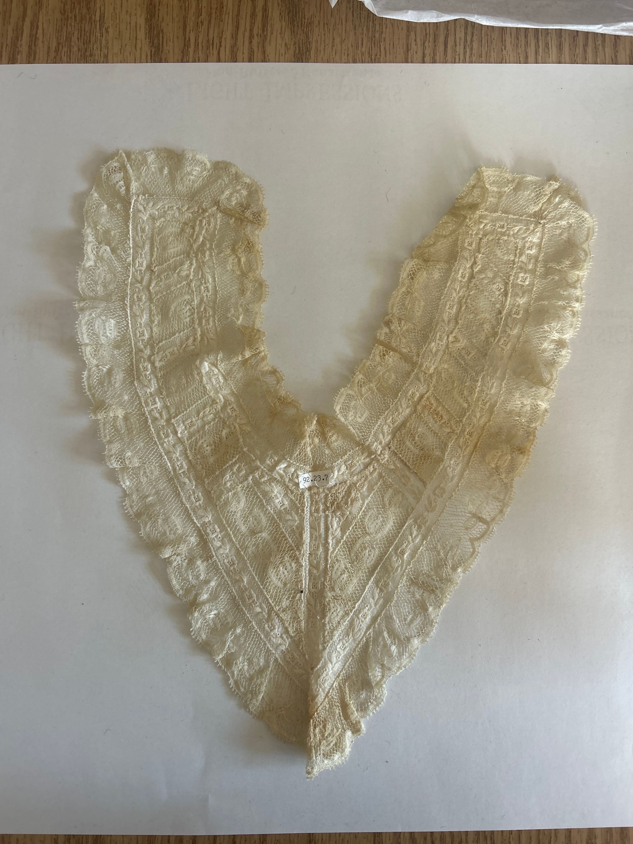SPECIAL SIGNIFICANCE: This lace collar was worn in the fashion show at a Historical Society program in the sumer of 1992.