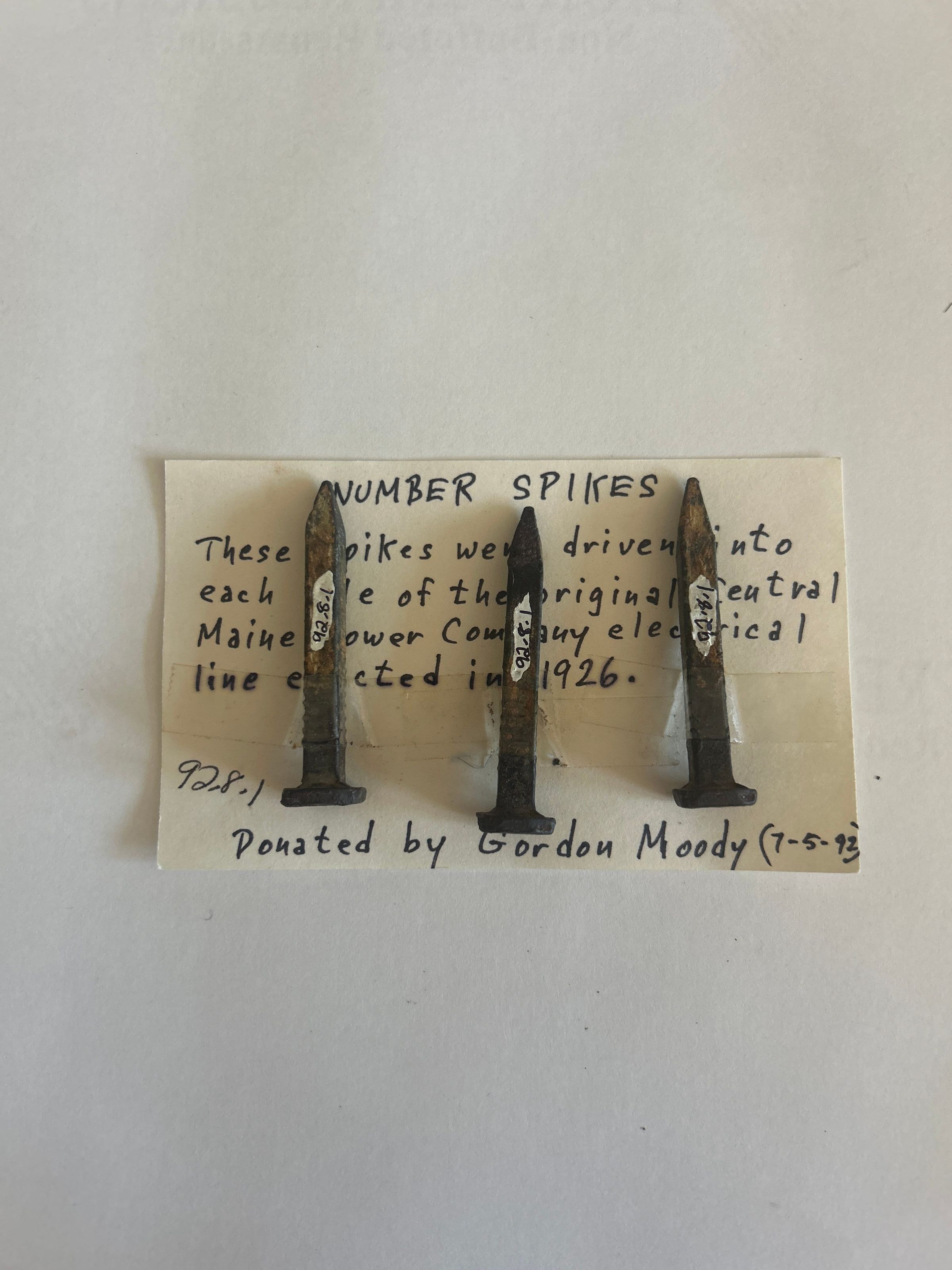 SPECIAL SIGNIFICANCE: Spike was removed from a Central Maine Power Electric Pole that had been erected in 1926.