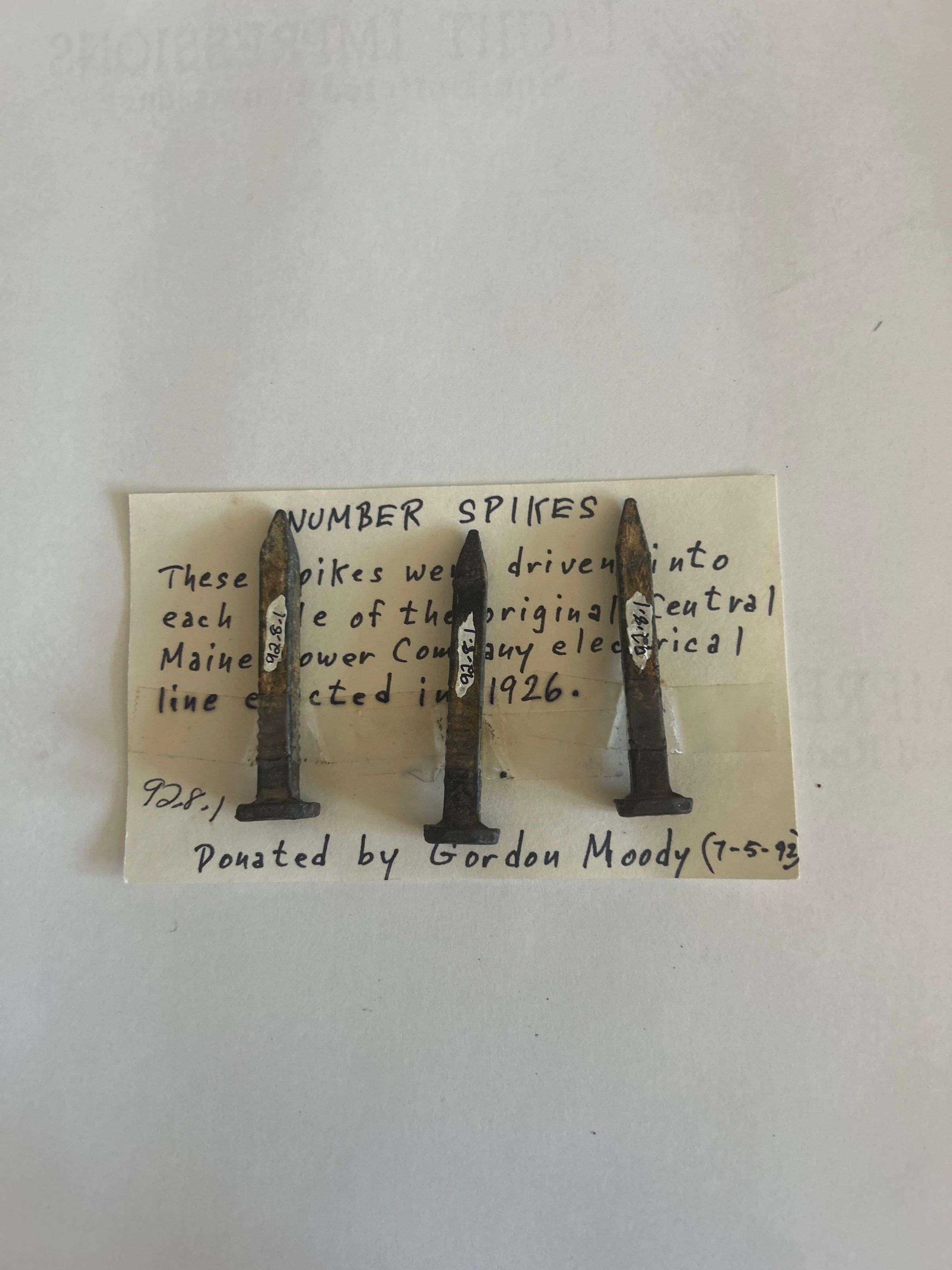 SPECIAL SIGNIFICANCE: Spike was removed from a Central Maine Power Electric Pole that had been erected in 1926.