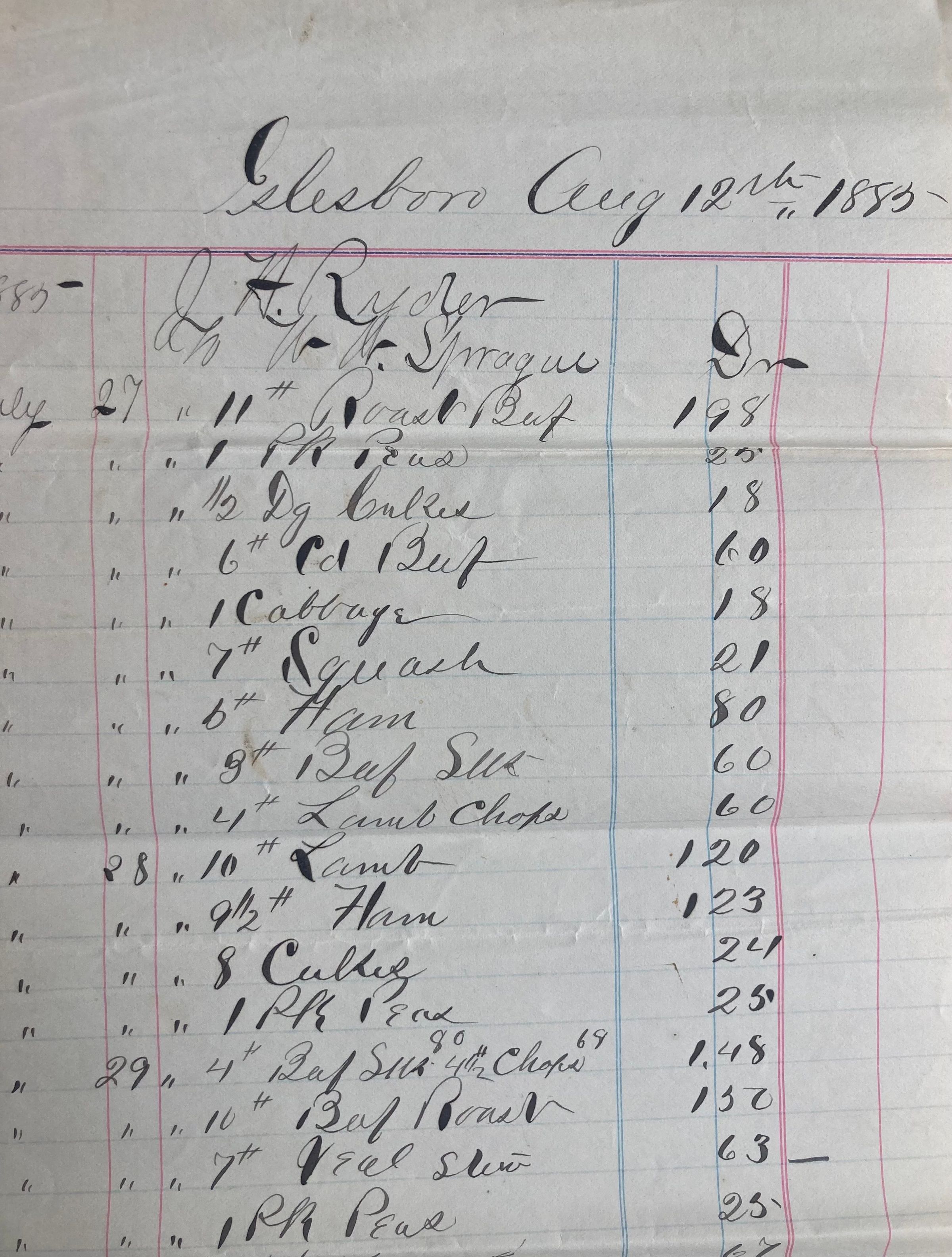 Receipts from the Seaside Hotel in Ryder's Cove, 1876-1883, originals, photocopies, and transcripts.