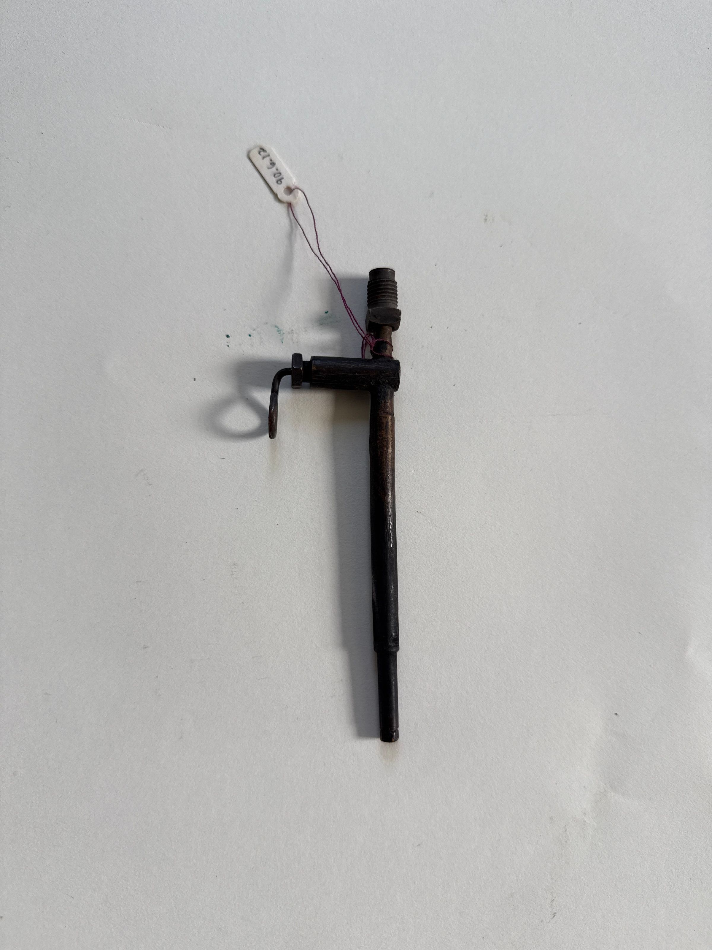 Generator consisting of a hollow metal tube 4 1/2 inches long and 1/8 inch in diameter. Open at one end with a threaded sleeve and nut and the other end closed by a tiny nut (?). Close to the open end is an arm 7/8 inch long ending with a small nut through which a bent hook is inserted. The hook can be turned.