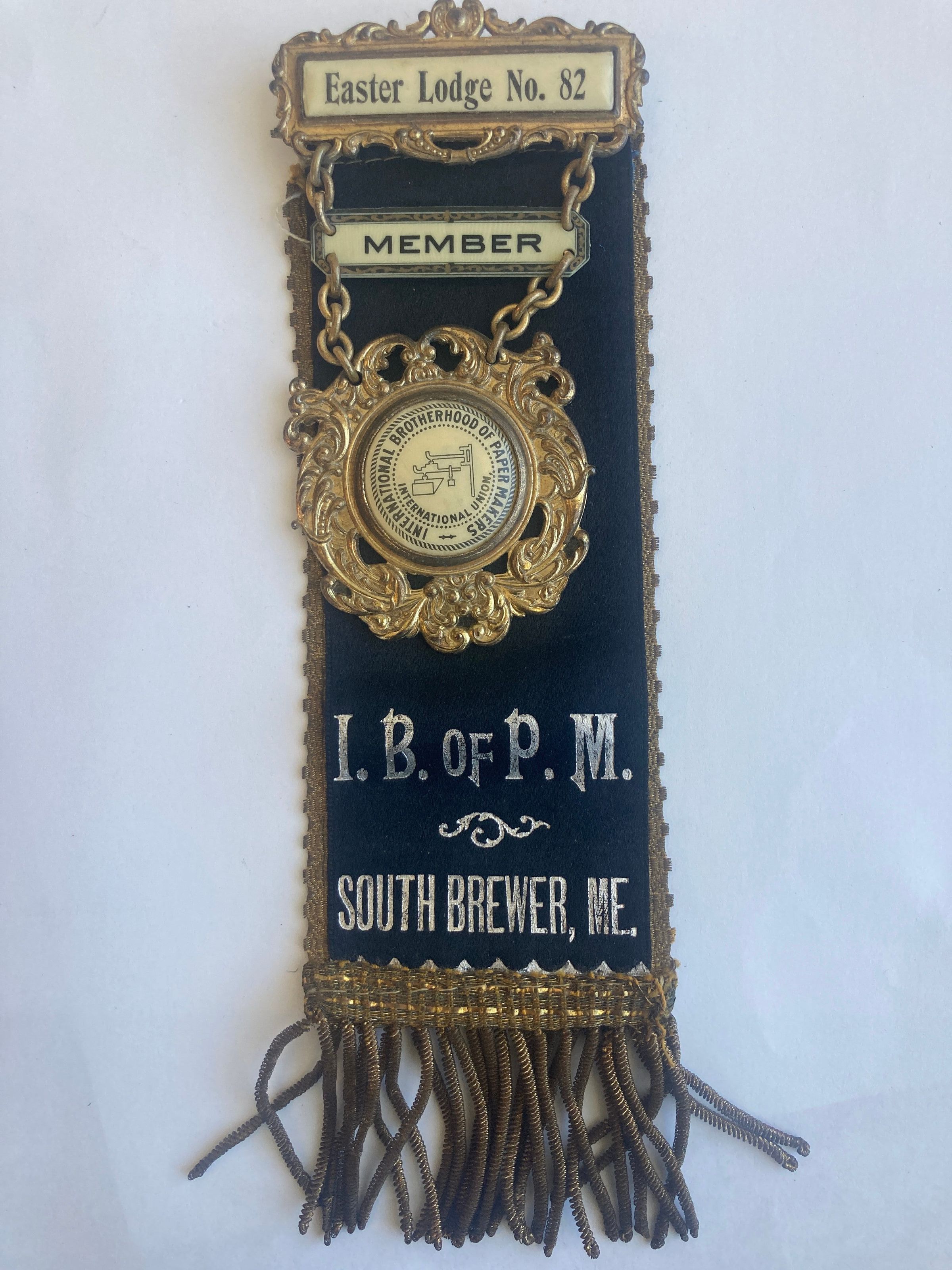 Ribbon for Easter Lodge No. 82, South Brewer Maine, International Brotherhood of Paper Makers.
