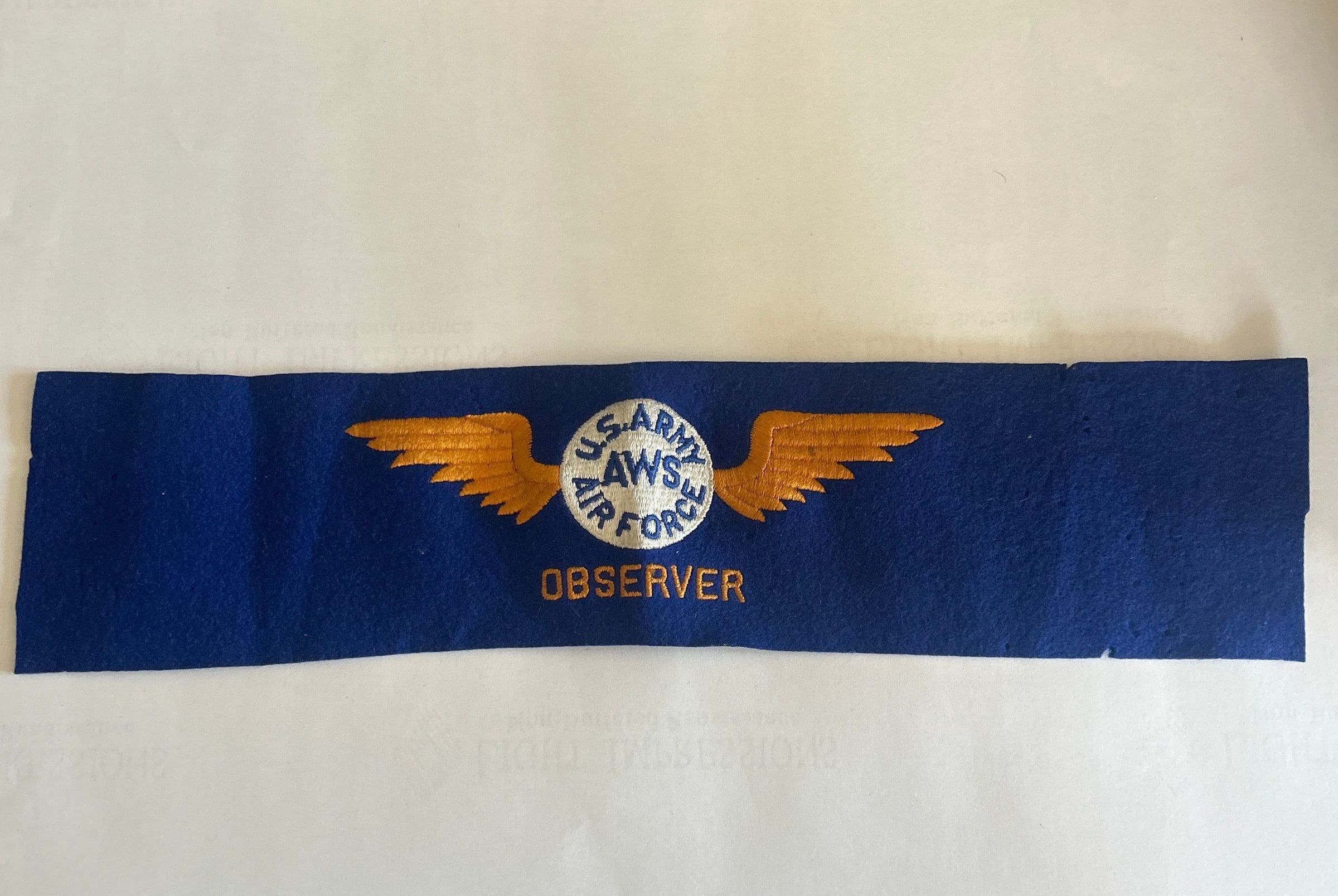 Insignia in center of band, consisting of white circle from which extend two yellow outstretched wings. In the middle of the circle is the inscription given below.